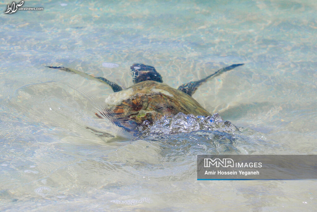 تصاویر / رهاسازی یک قطعه لاک پشت سبز در جزیره کیش