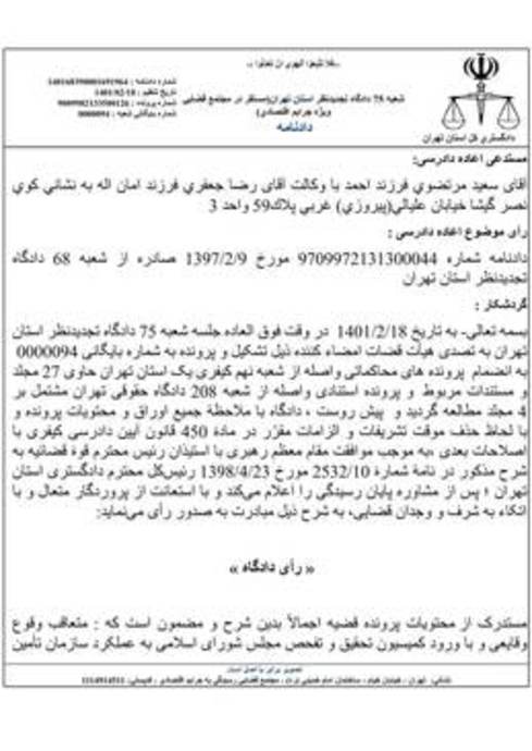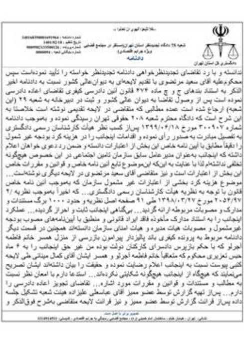 سعید مرتضوی از طریق درخواست اعمال ماده ۴۷۴ قانون آییننامه دادرسی کیفری، حکم برائت خود را دریافت کرده است.