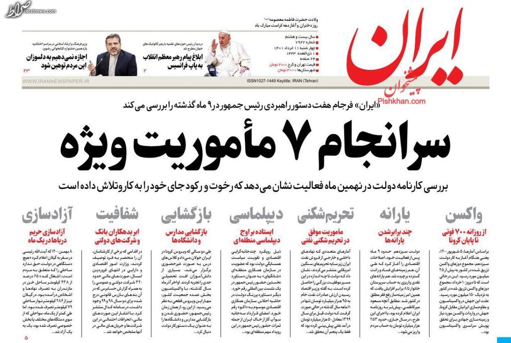 تصاویر / پیشخوان روزنامههای پنجشنبه ۱۲ خرداد