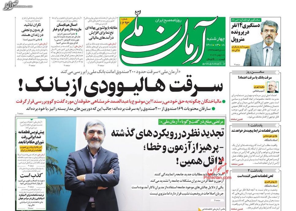 تصاویر / پیشخوان روزنامههای چهارشنبه ۱۸ خرداد