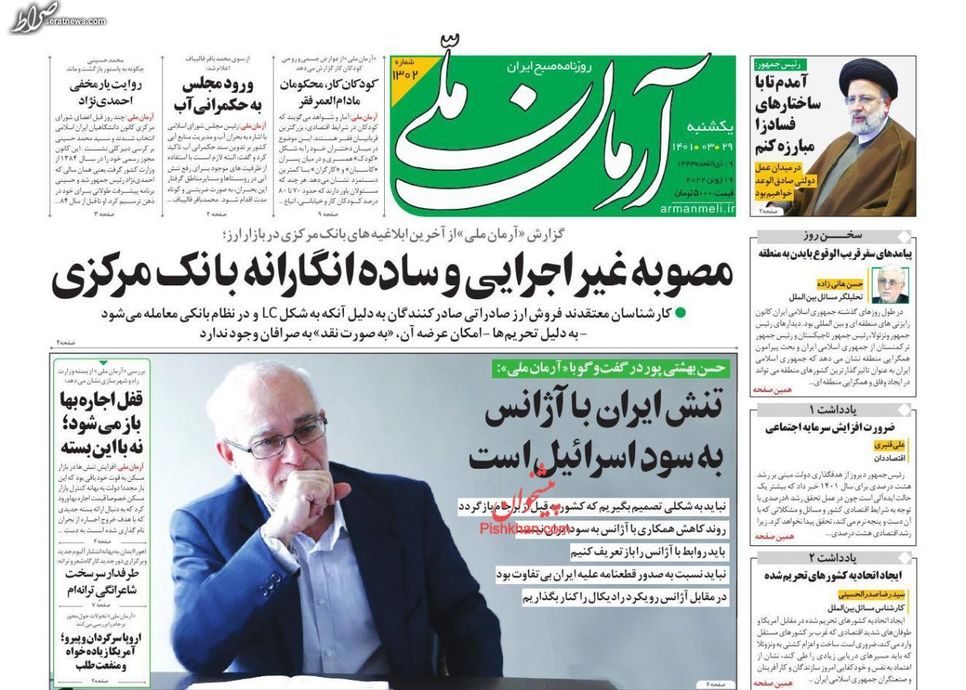 تصاویر / پیشخوان روزنامههای دوشنبه ۳۰ خرداد