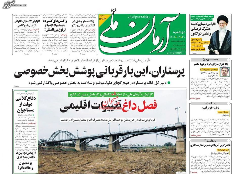 تصاویر / پیشخوان روزنامه‌های دوشنبه ۳۰ خرداد