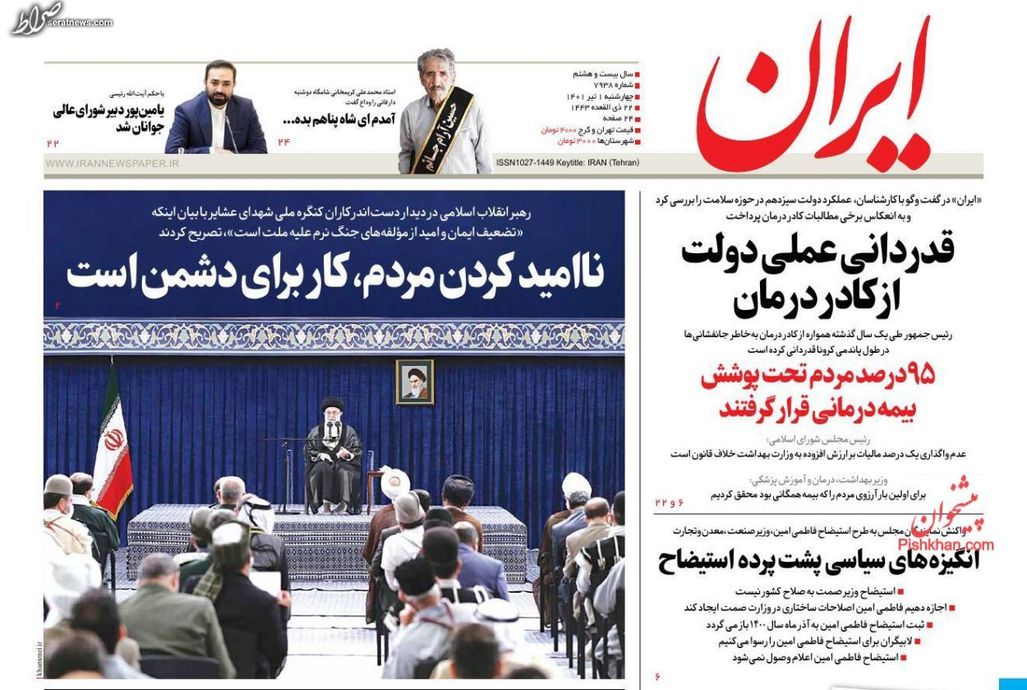 تصاویر / پیشخوان روزنامههای چهارشنبه ۱ تیر