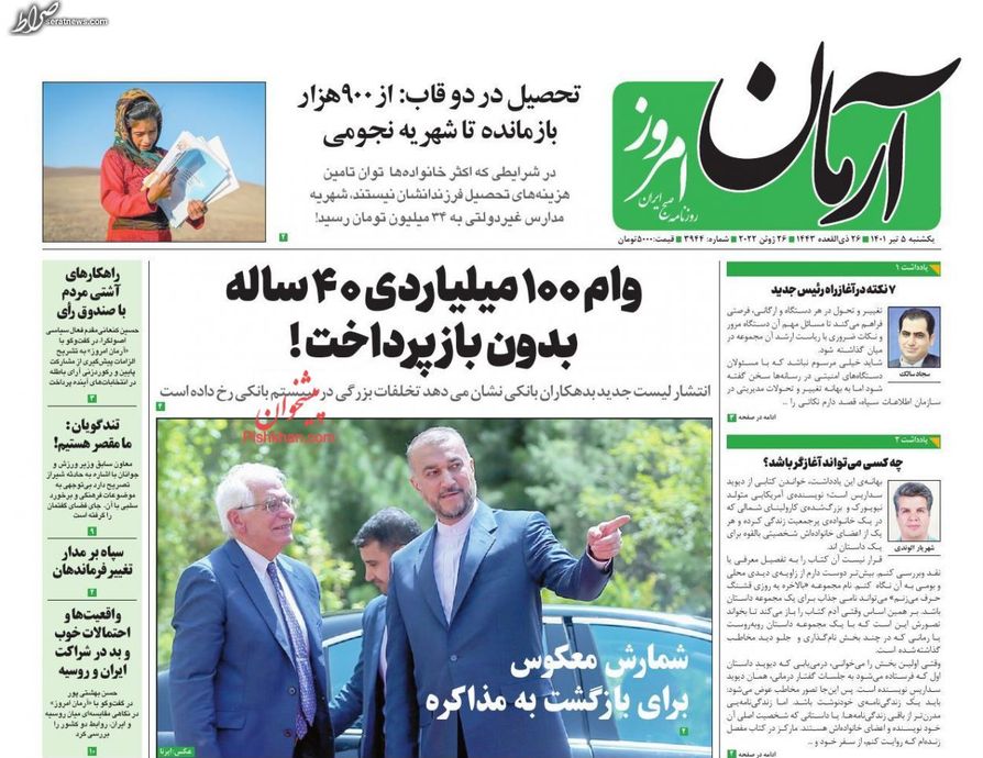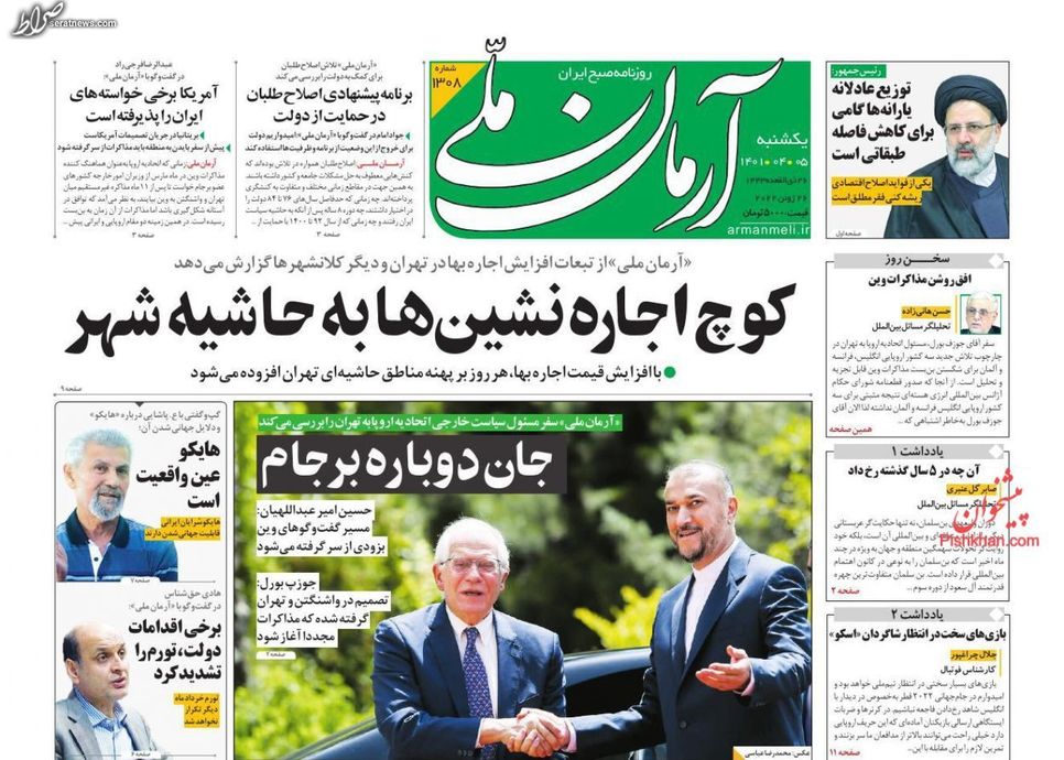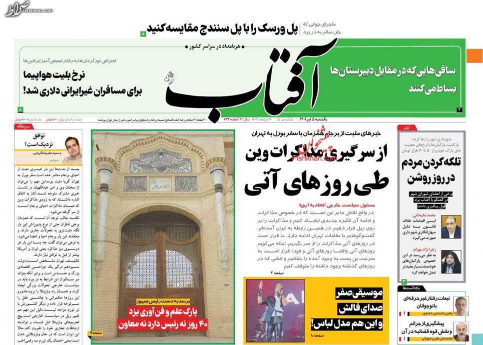 تصاویر / پیشخوان روزنامههای یکشنبه ۵ تیر