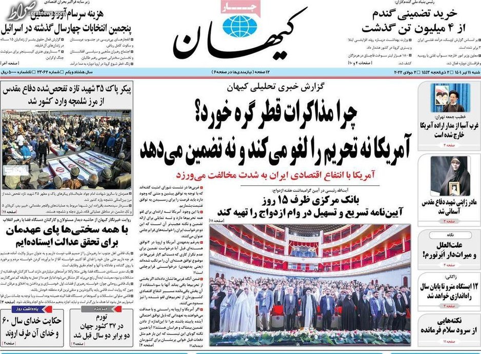 تصاویر / پیشخوان روزنامههای شنبه ۱۱ تیر
