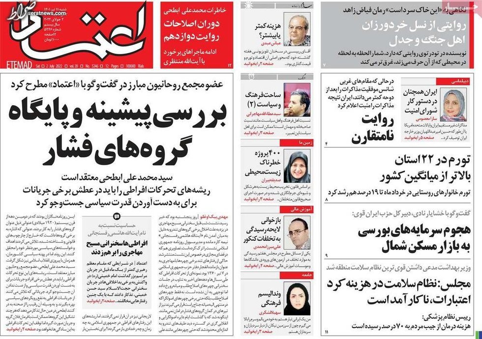 تصاویر / پیشخوان روزنامههای یکشنبه ۱۲ تیر