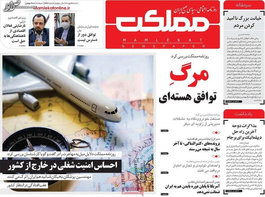 تصاویر / پیشخوان روزنامههای چهارشنبه ۸ تیر