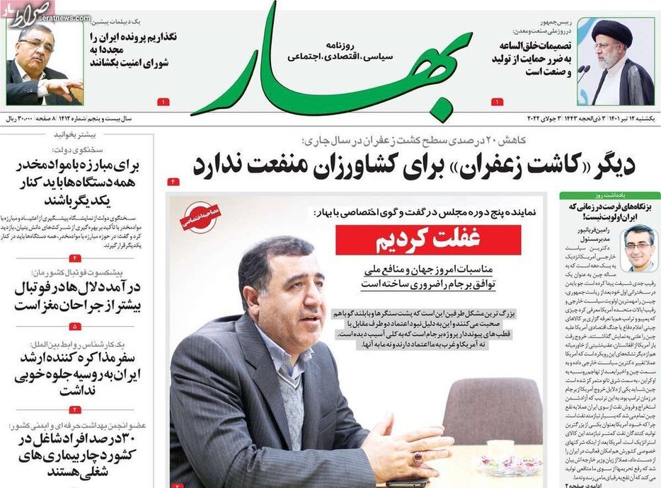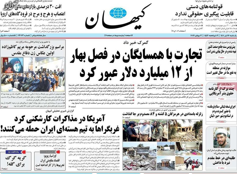 تصاویر / پیشخوان روزنامههای یکشنبه ۱۲ تیر