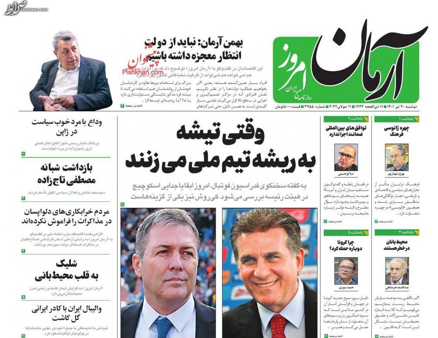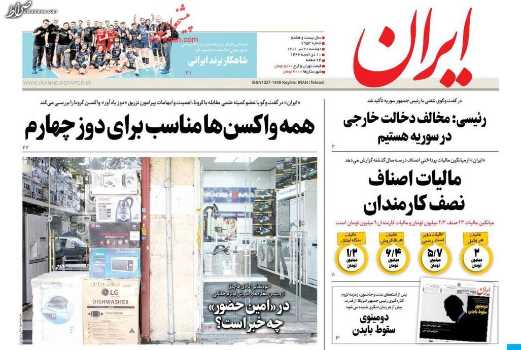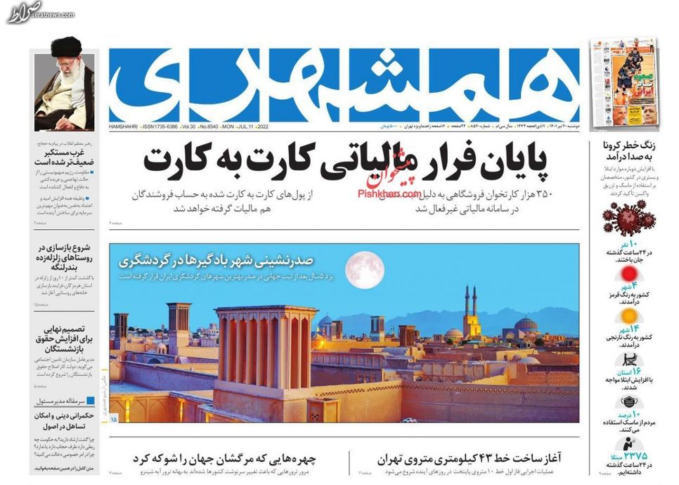 تصاویر / پیشخوان روزنامههای دوشنبه ۲۰ تیر