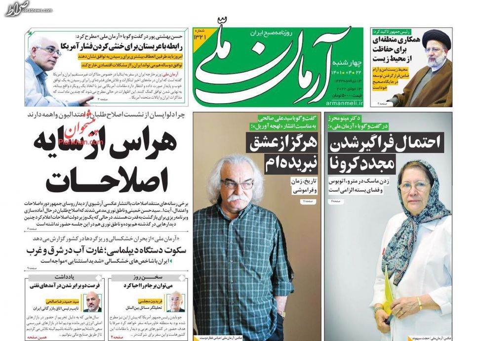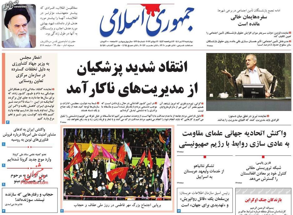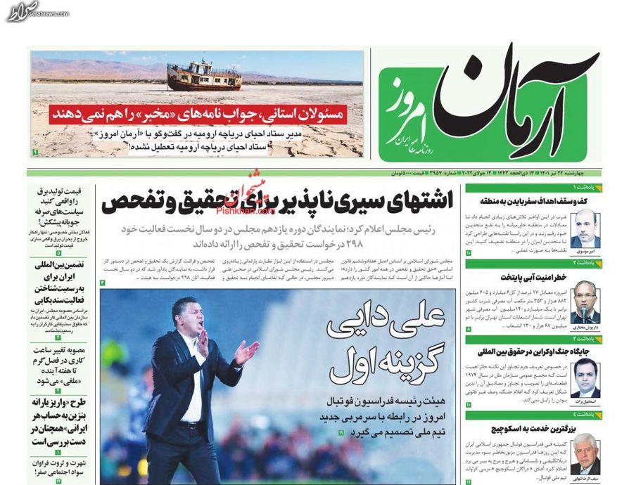 تصاویر / پیشخوان روزنامههای چهارشنبه ۲۲ تیر