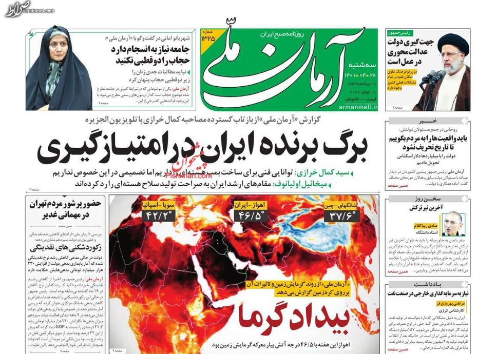 تصاویر / پیشخوان روزنامه‌های سه‌شنبه ۲۸ تیر
