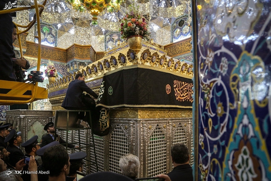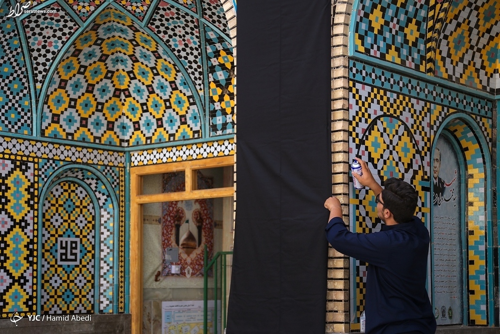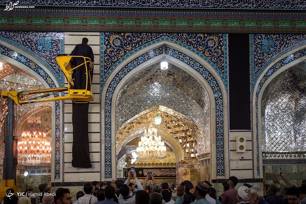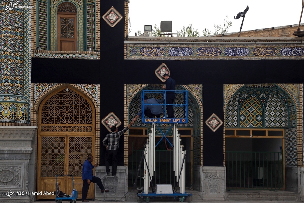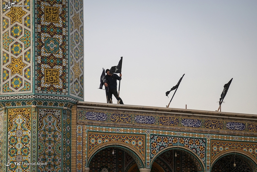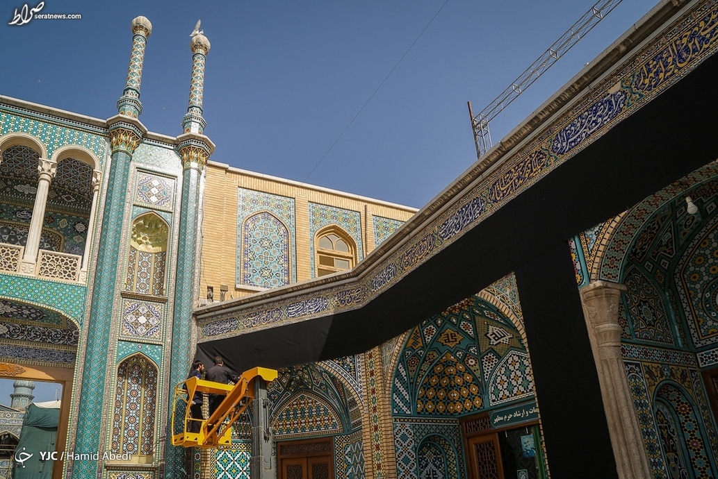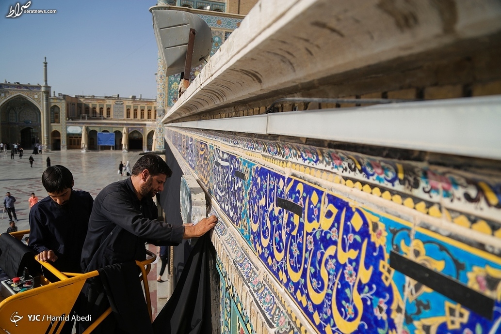 بخشهای مختلف حرم حضرت فاطمه معصومه (س) در شهر مقدس قم، در آستانه ماه محرم به نشانه عزای سالار شهیدان، حضرت اباعبدالله الحسین (ع)، سیاه پوش شد.