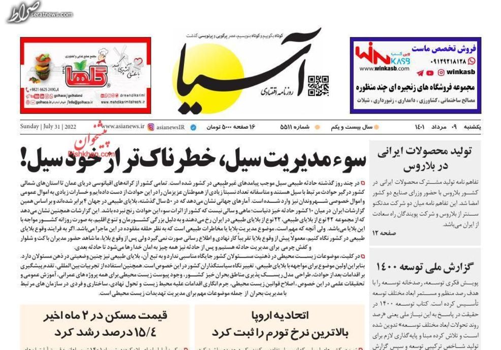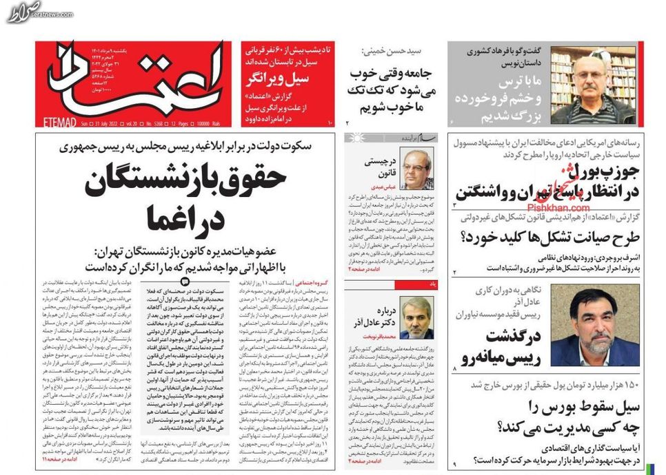 تصاویر / پیشخوان روزنامه‌های یکشنبه ۹ مرداد