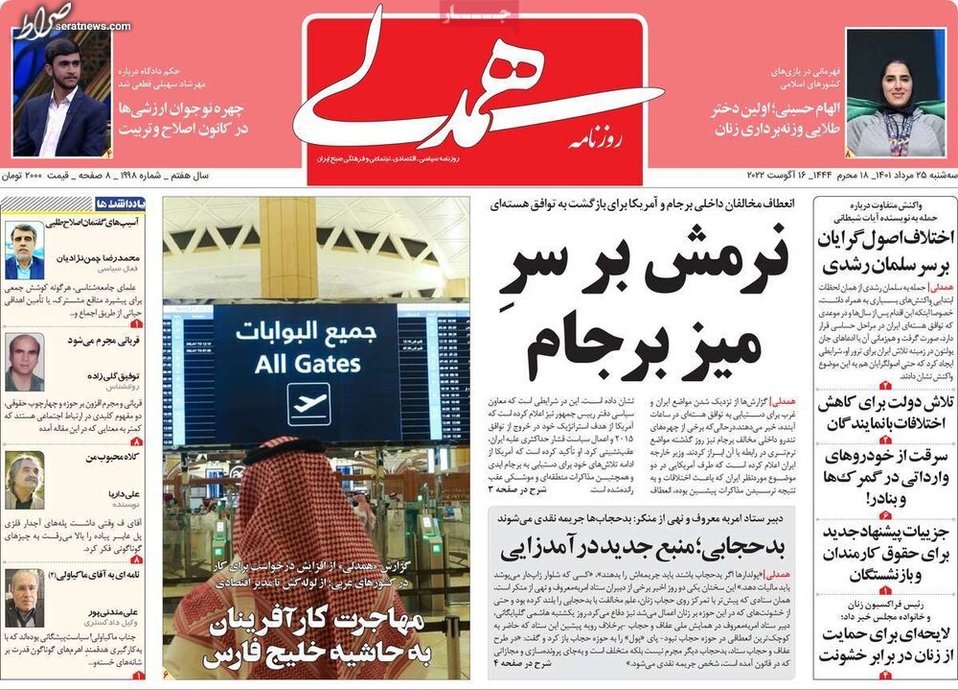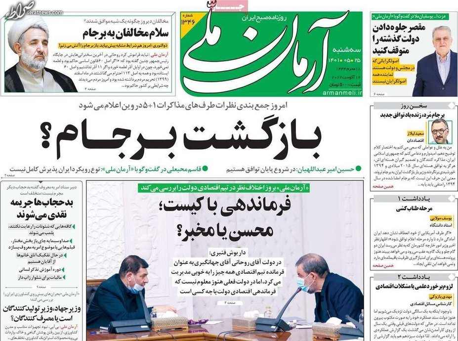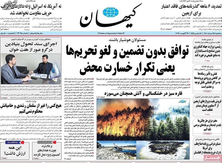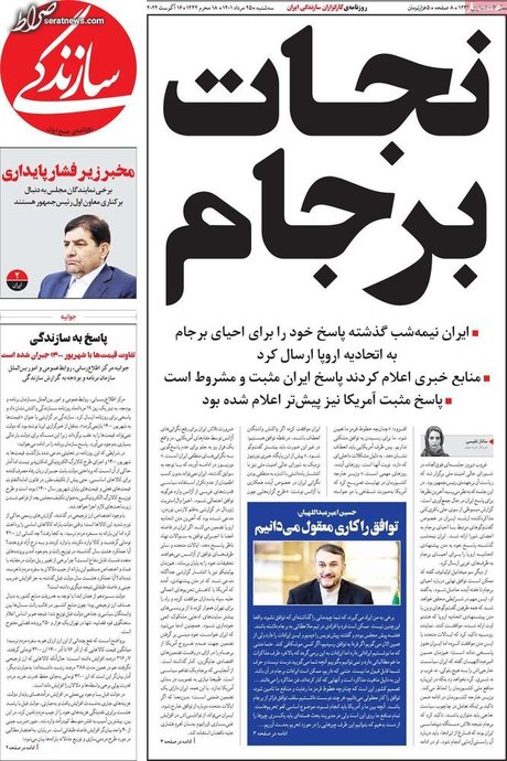 تصاویر / پیشخوان روزنامه‌های سه شنبه ۲۵ مرداد