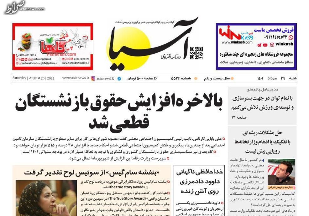تصاویر / پیشخوان روزنامه‌های شنبه ۲۹ مرداد