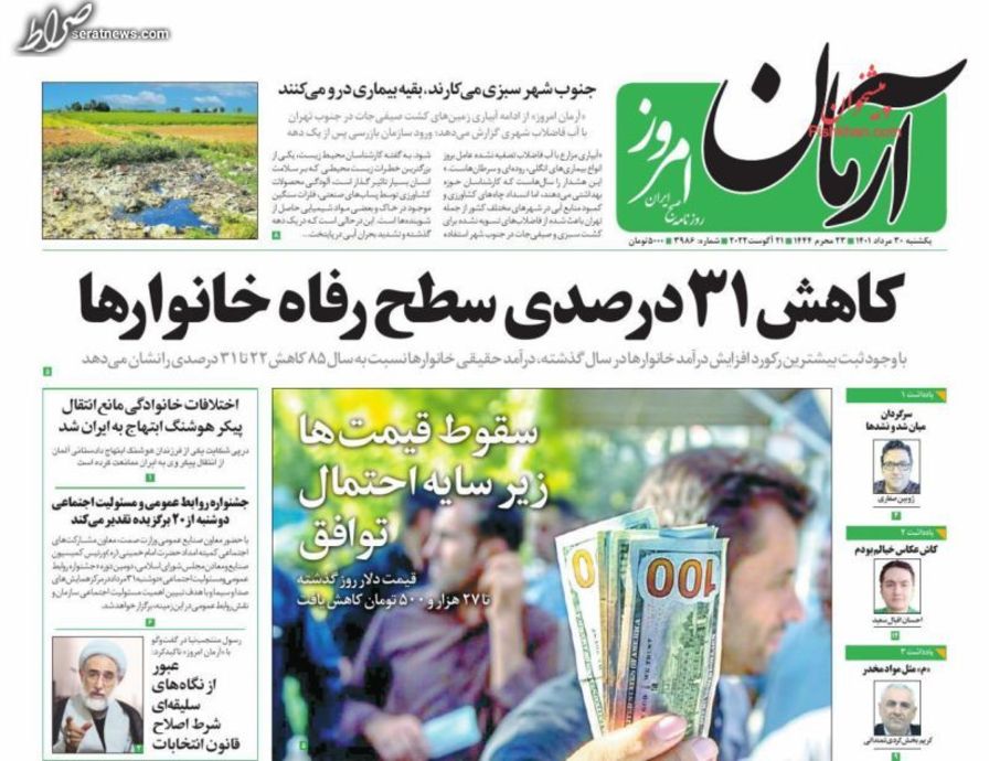 تصاویر / پیشخوان روزنامههای یکشنبه ۳۰ مرداد