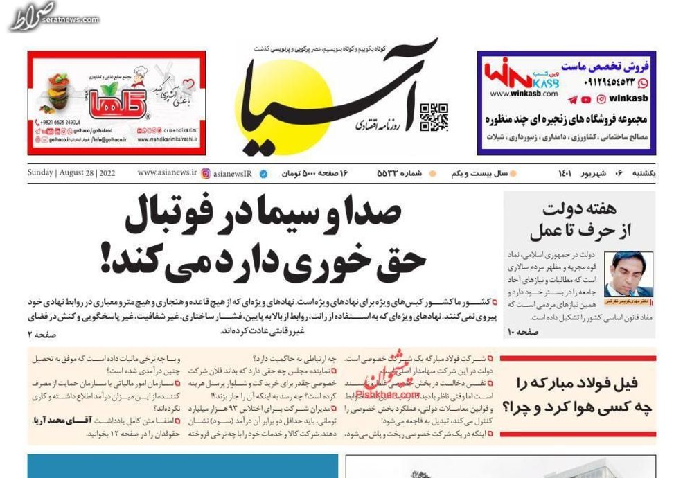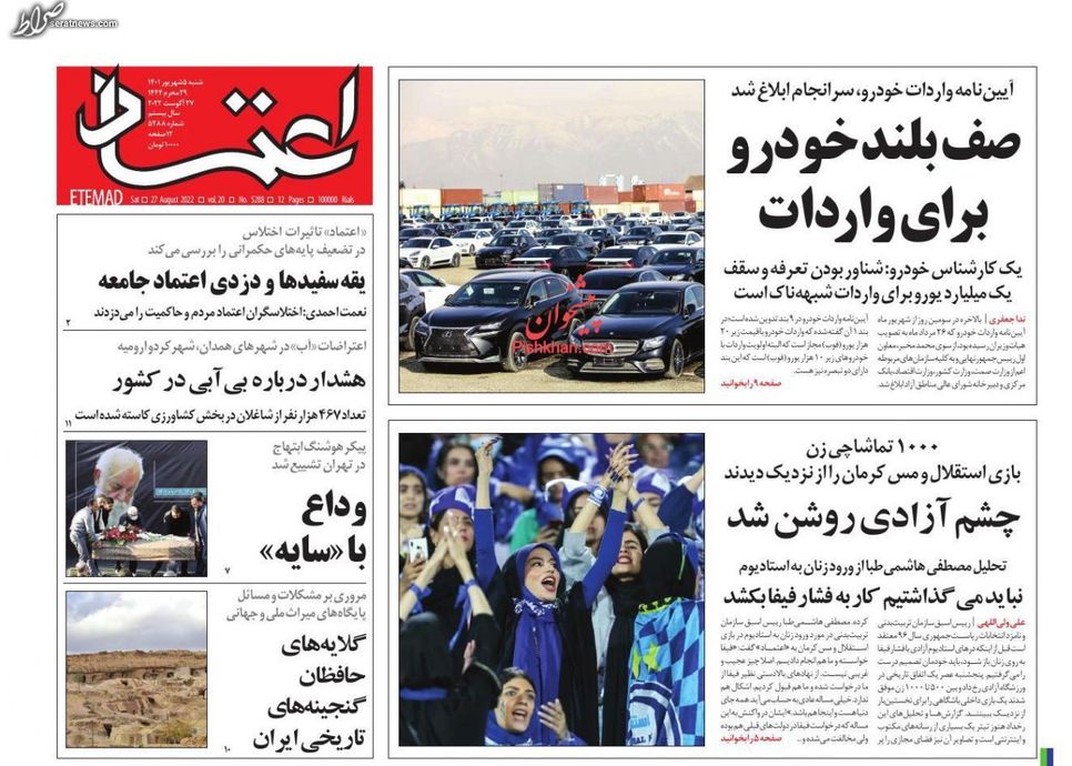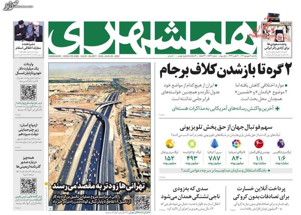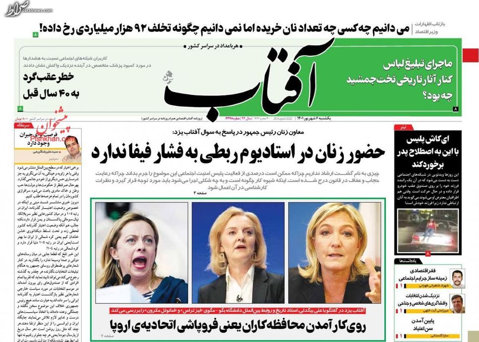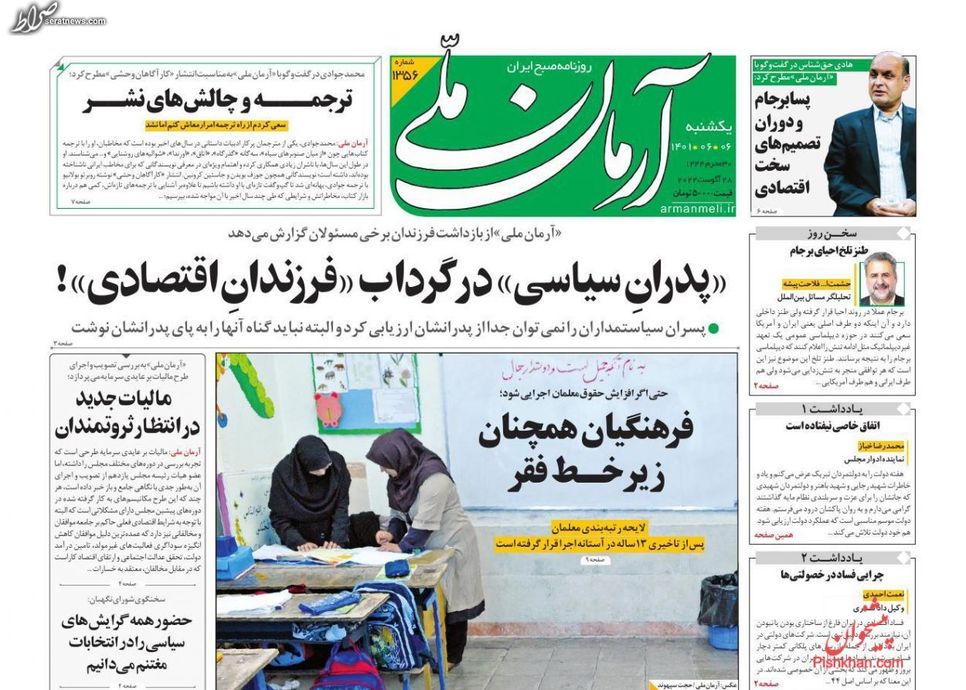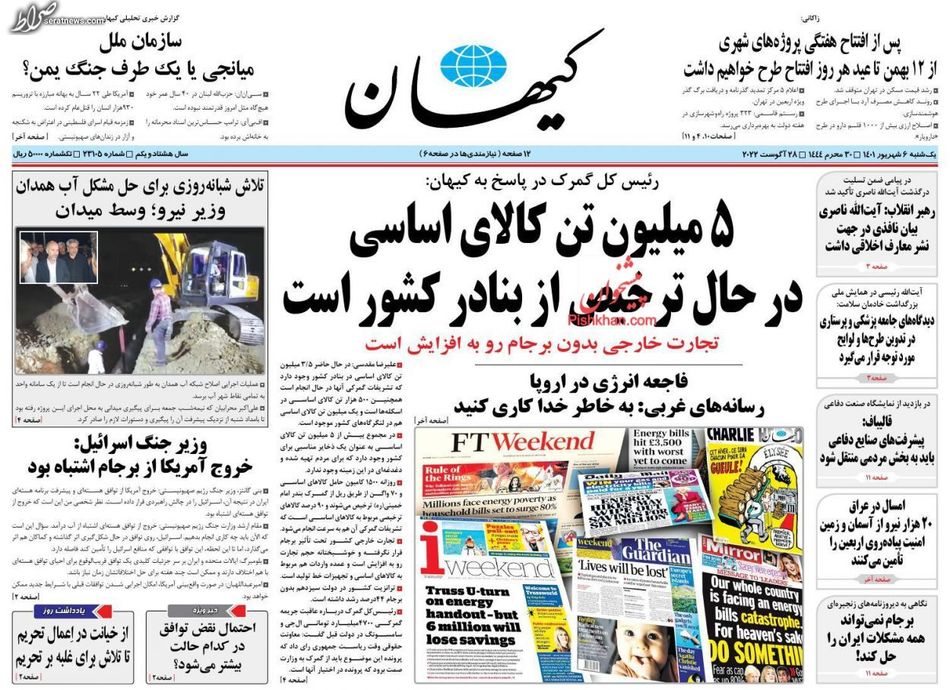 تصاویر / پیشخوان روزنامههای یکشنبه ۶ شهریور
