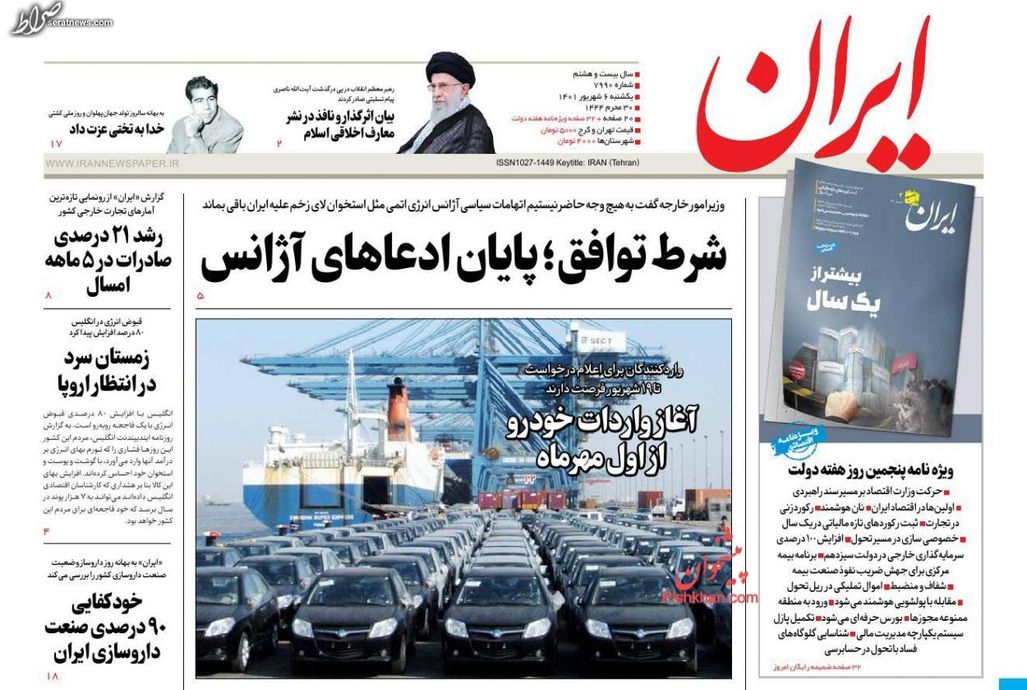 تصاویر / پیشخوان روزنامههای شنبه ۵ شهریور