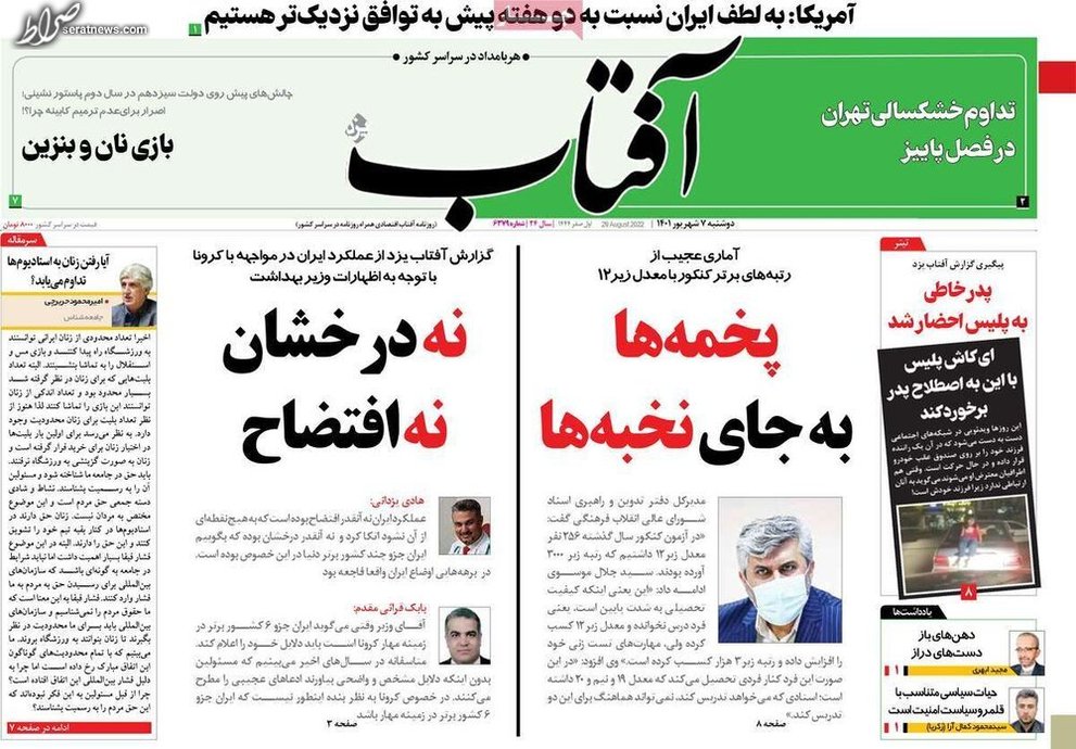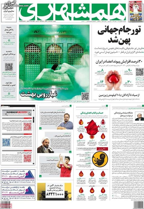 تصاویر / پیشخوان روزنامههای سهشنبه ۸ شهریور