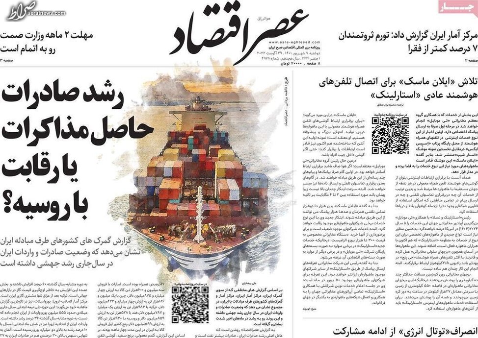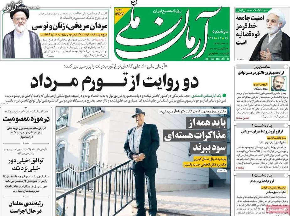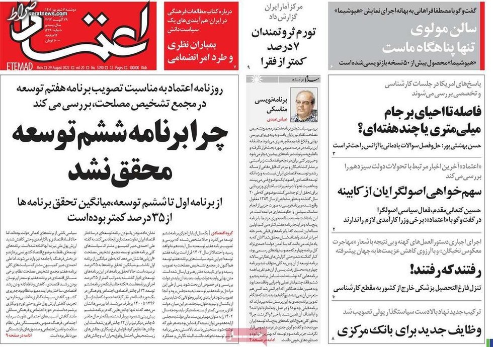 تصاویر / پیشخوان روزنامههای دوشنبه ۷ شهریور