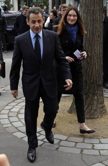 کارلا برونی همسر نیکلای سارکوزی نیز امروز در کنار او در انتخابات ریاست جمهوری فرانسه شرکت کرد.