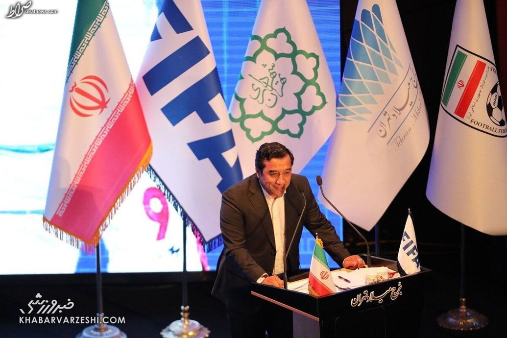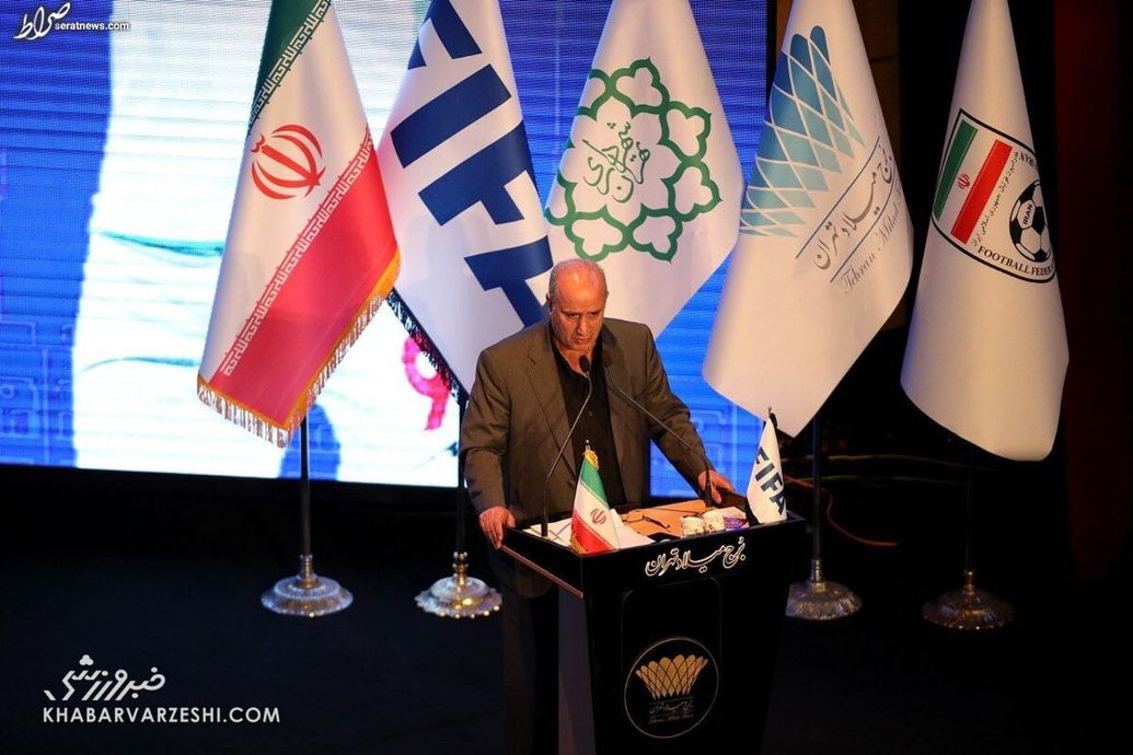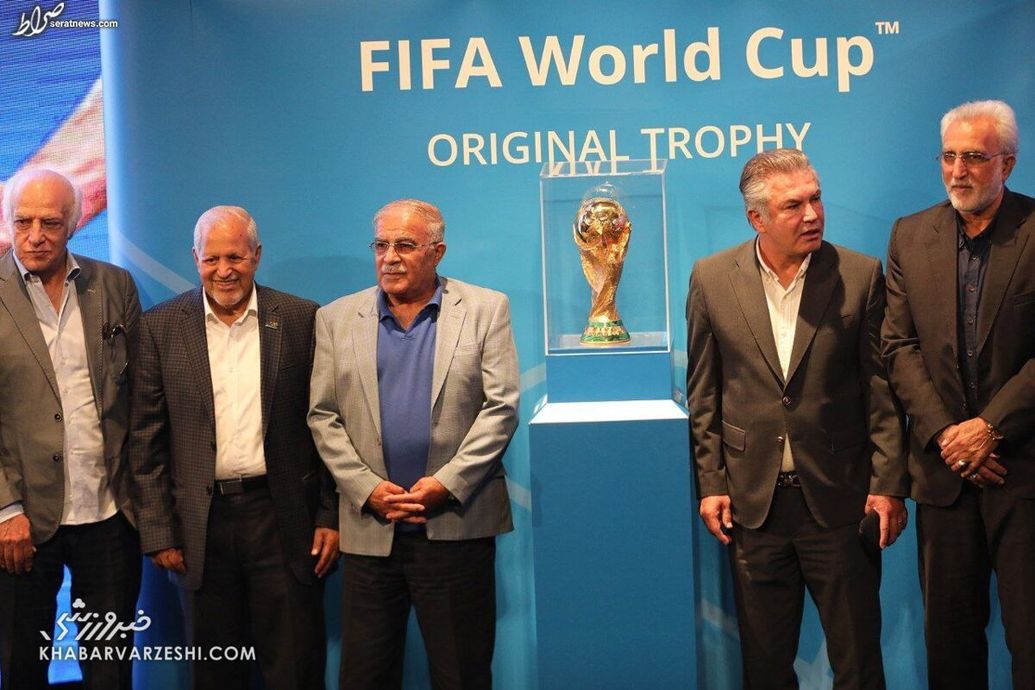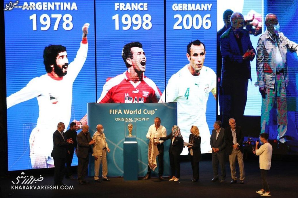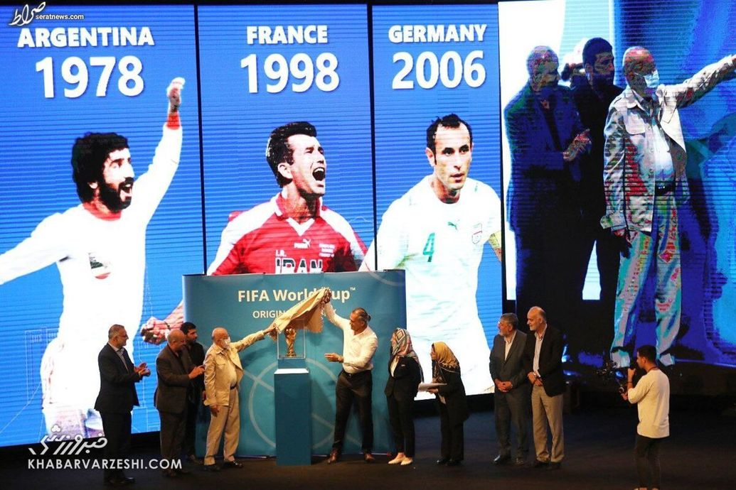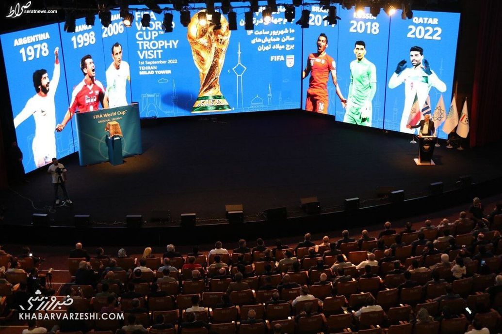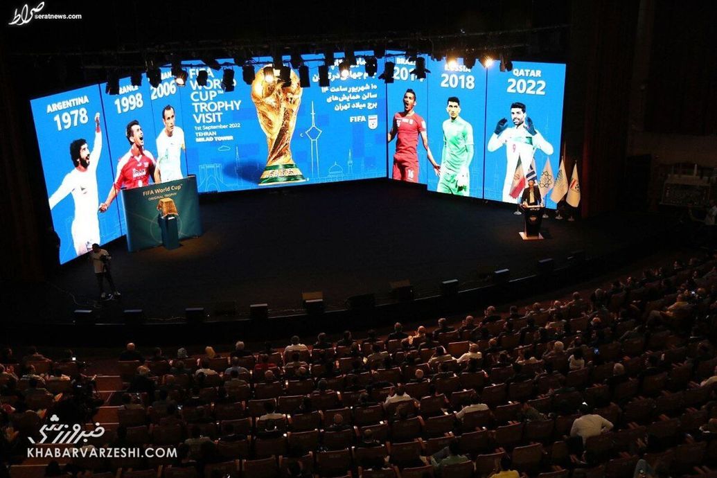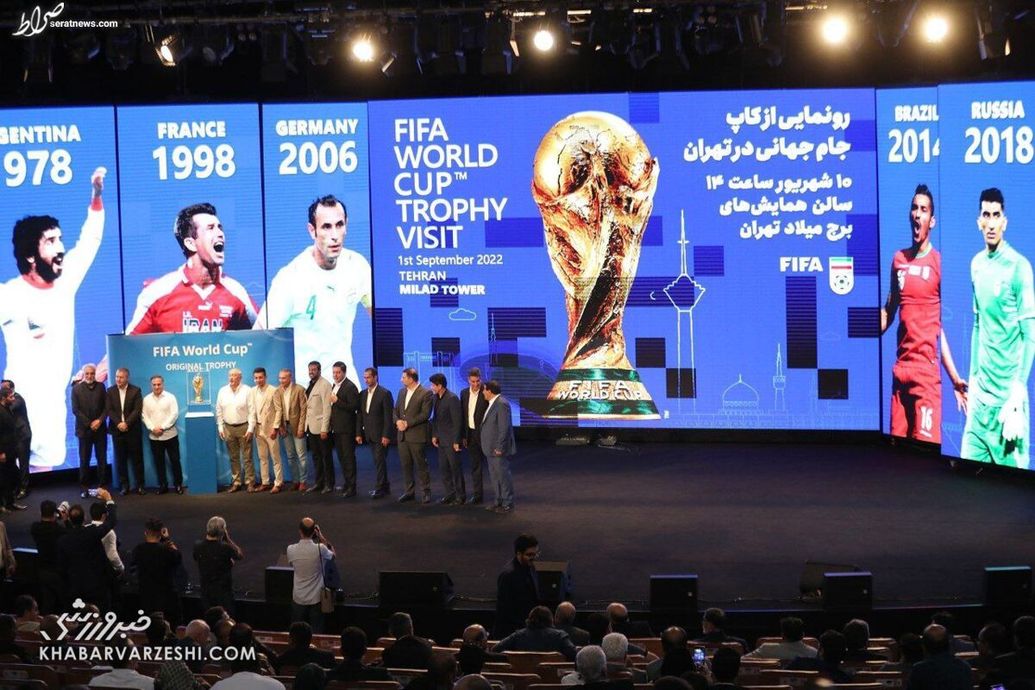 تصاویری از رونمایی پرحاشیه کاپ قهرمانی جامجهانی در برج میلاد/ ستارههای پیشین و فعلی تیم ملی آمدند