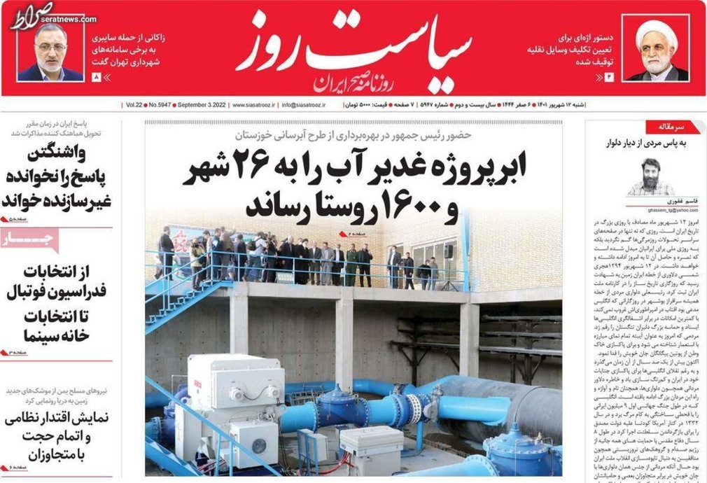 تصاویر / پیشخوان روزنامههای یکشنبه ۱۳ شهریور