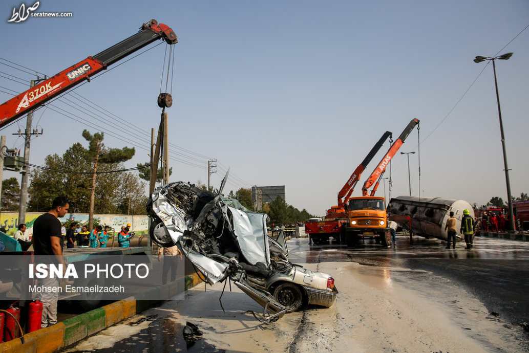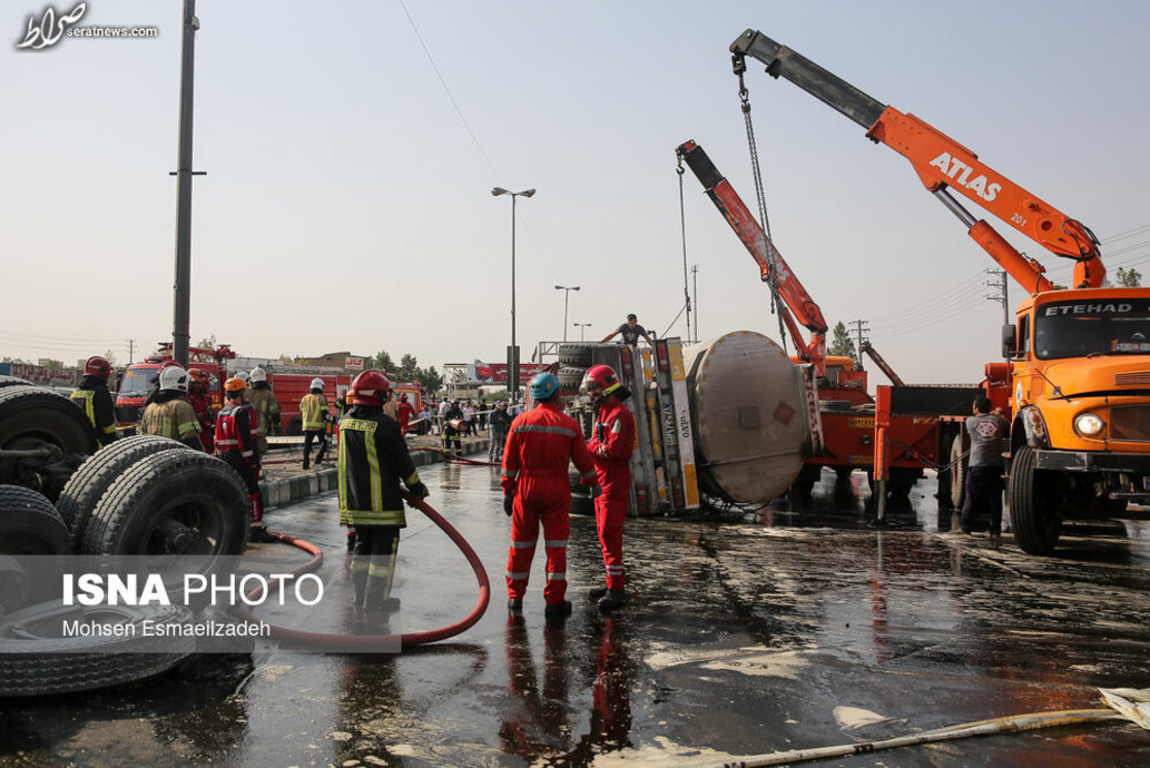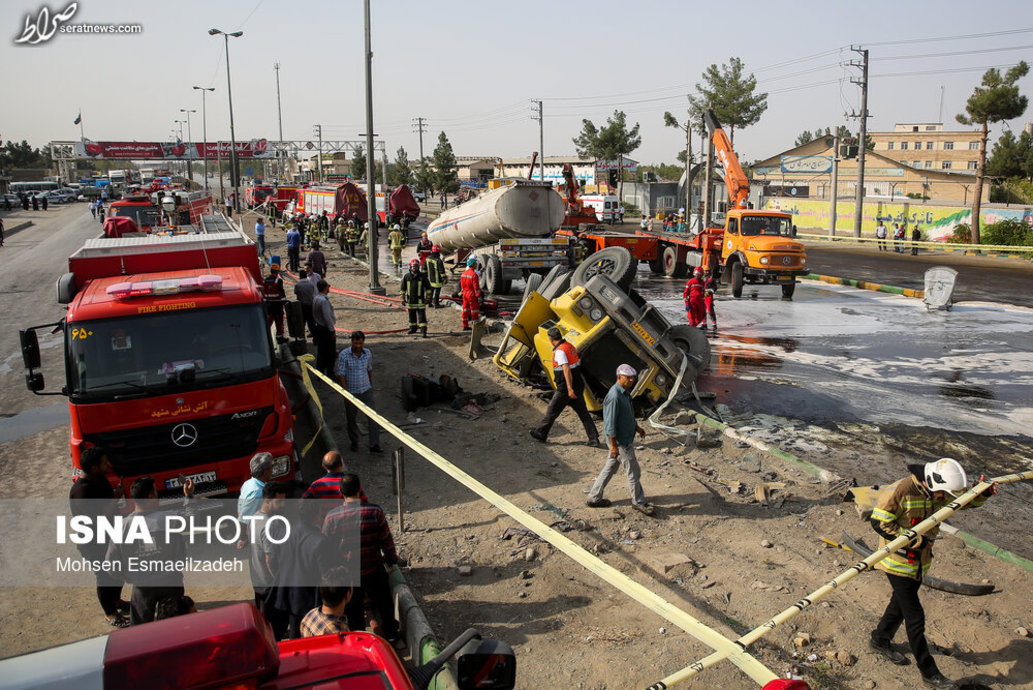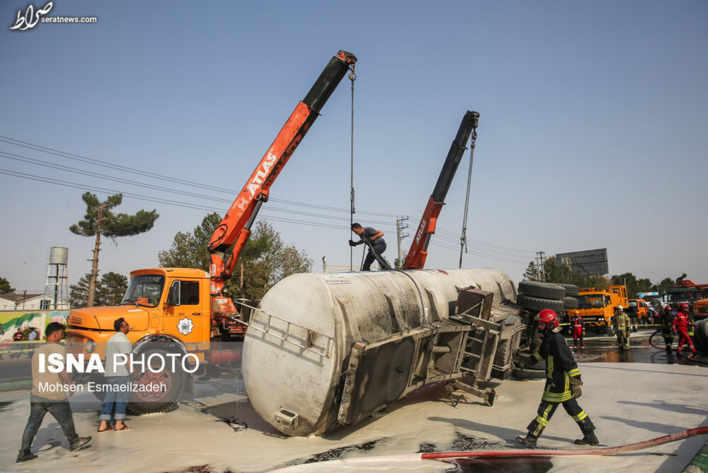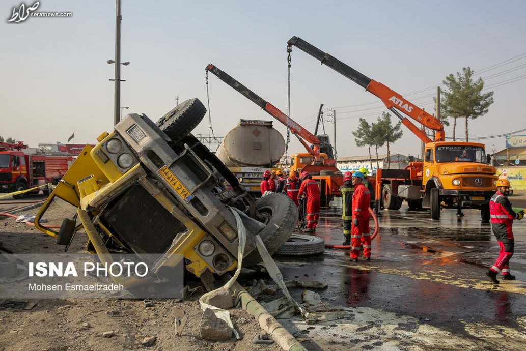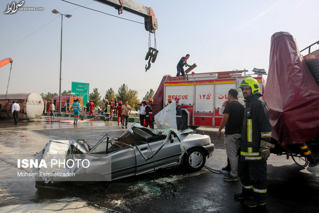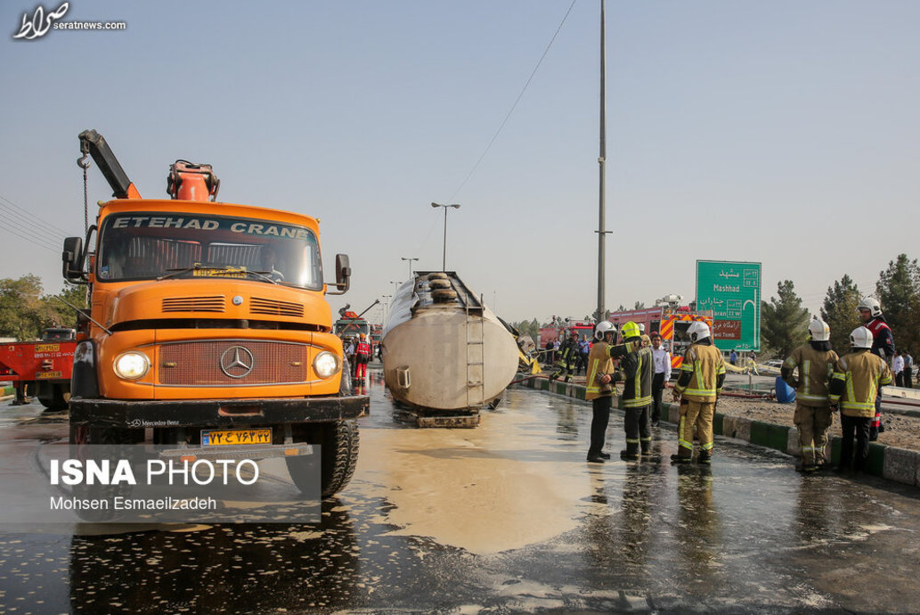 تصاویر / واژگونی مرگبار تانکر حامل گازوئیل در مشهد