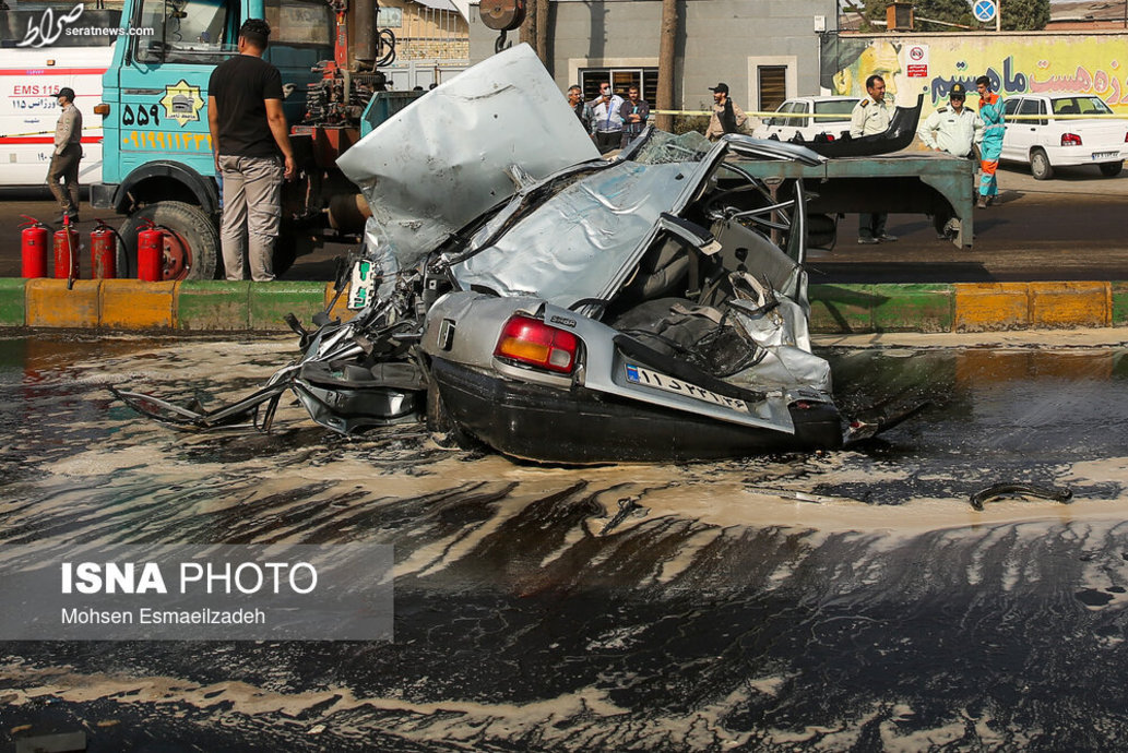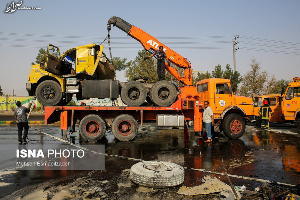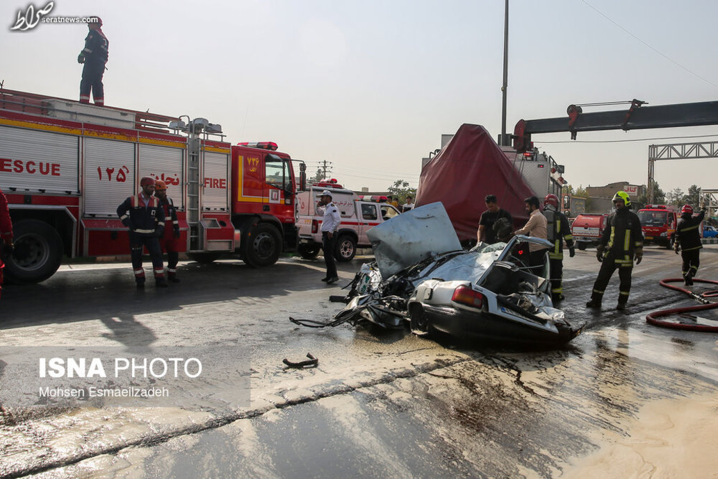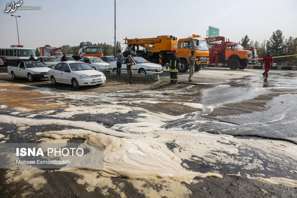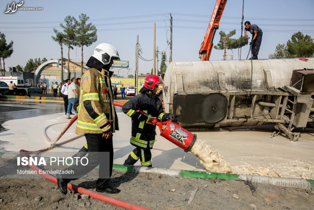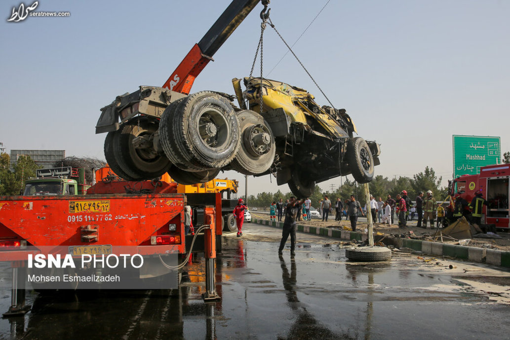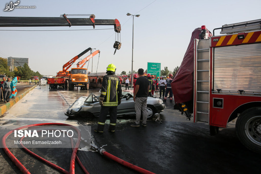 تصاویر / واژگونی مرگبار تانکر حامل گازوئیل در مشهد