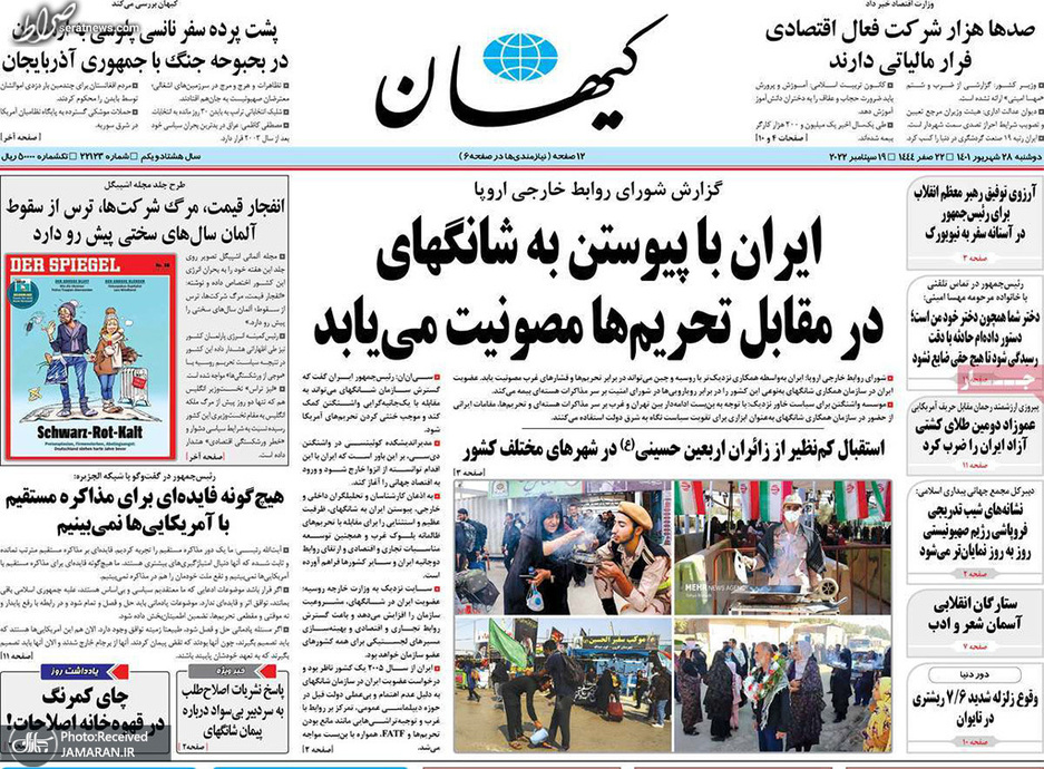 تصاویر/ پیشخوان روزنامههای سه شنبه ۲۹ شهریور