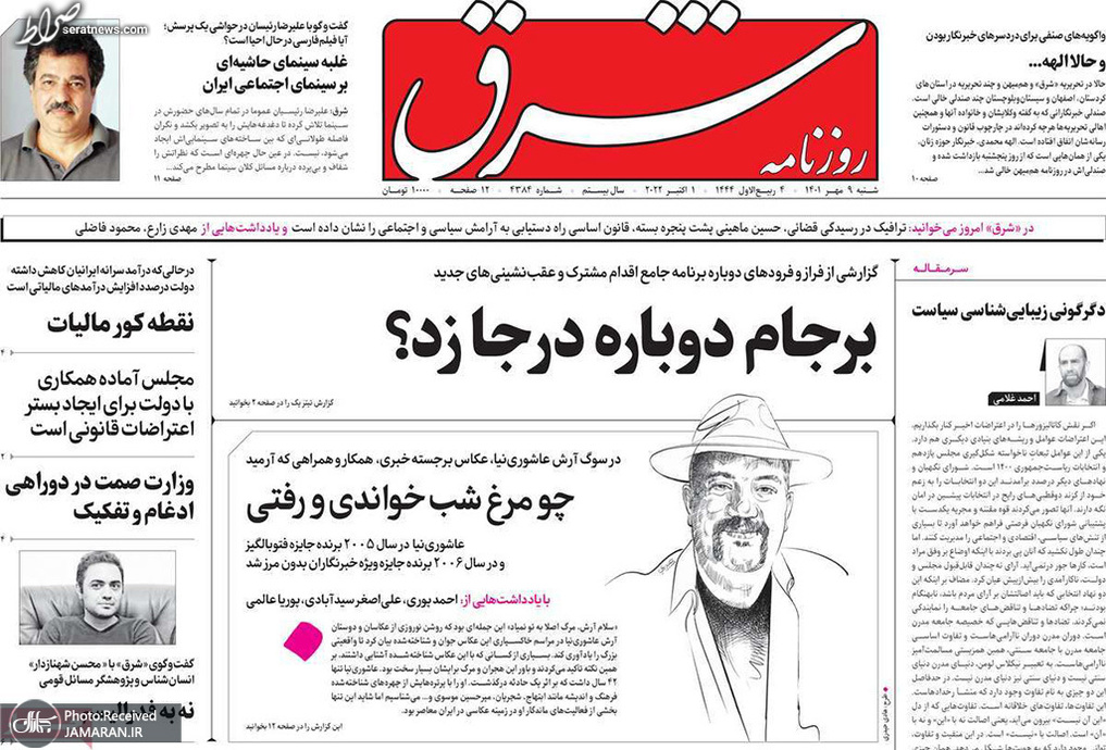تصاویر/ پیشخوان روزنامههای یکشنبه ۱۰ مهر