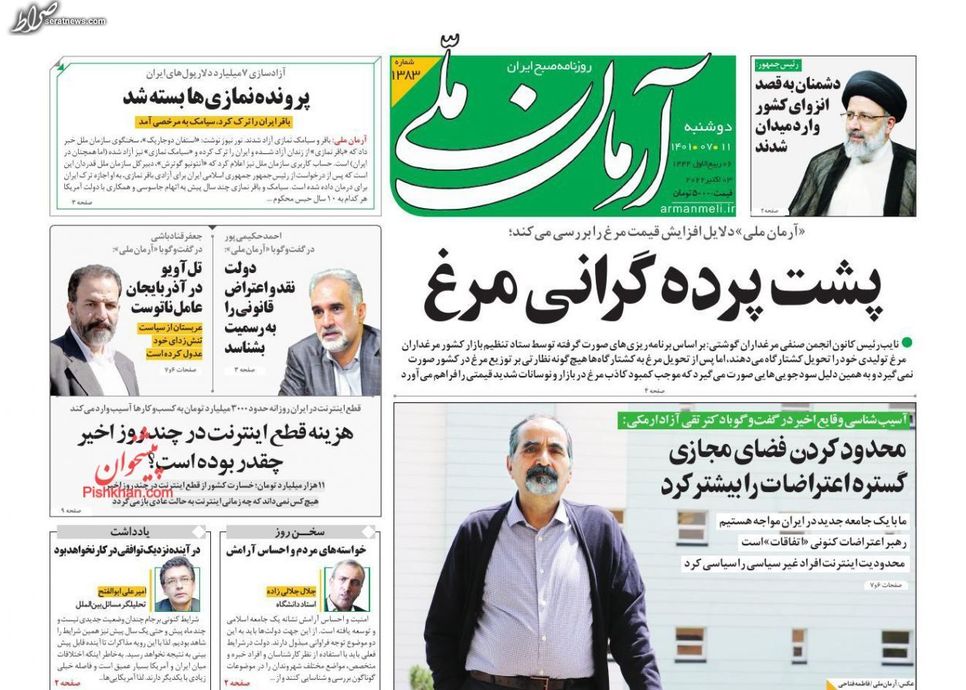 تصاویر/ پیشخوان روزنامههای دوشنبه ۱۱ مهر
