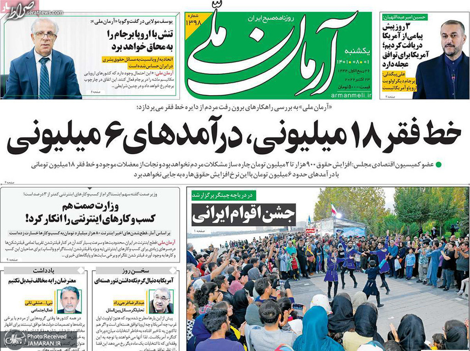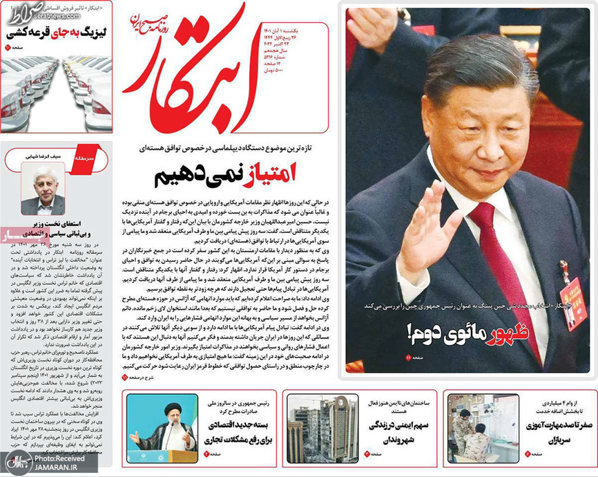 تصاویر/ پیشخوان روزنامههای یکشنبه ۱ آبان