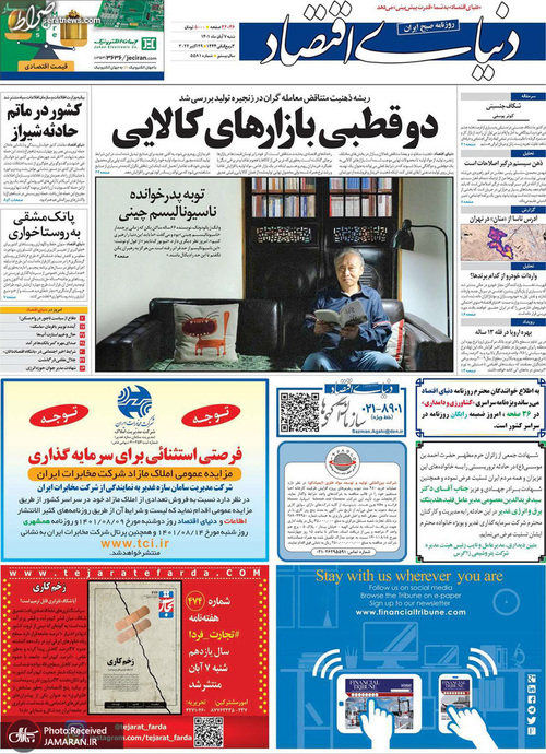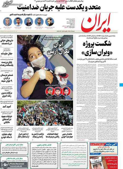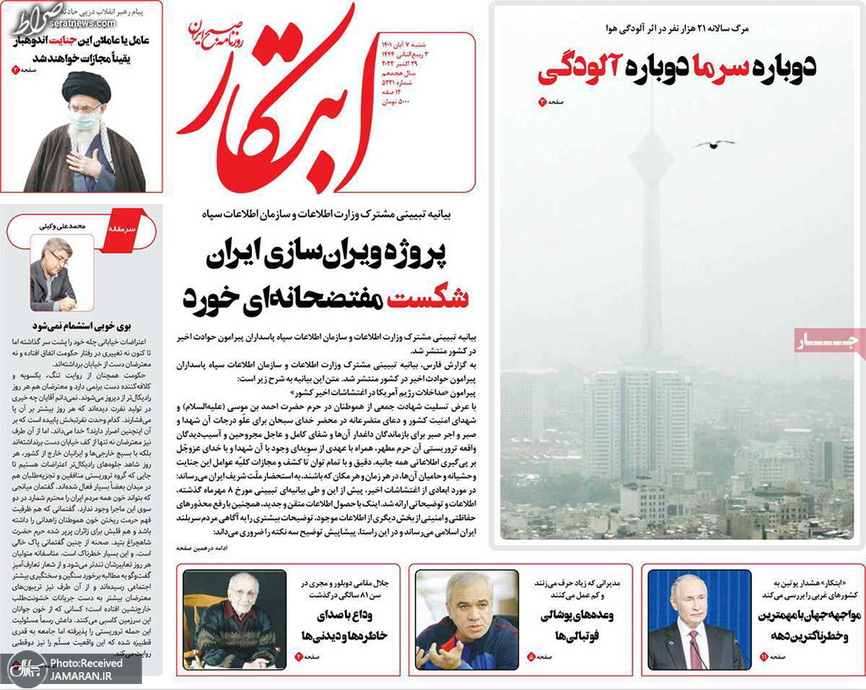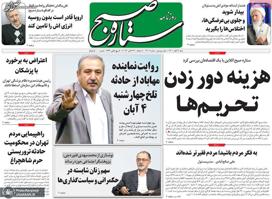 تصاویر/ پیشخوان روزنامههای یکشنبه ۸ آبان