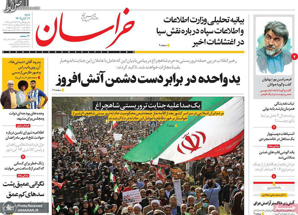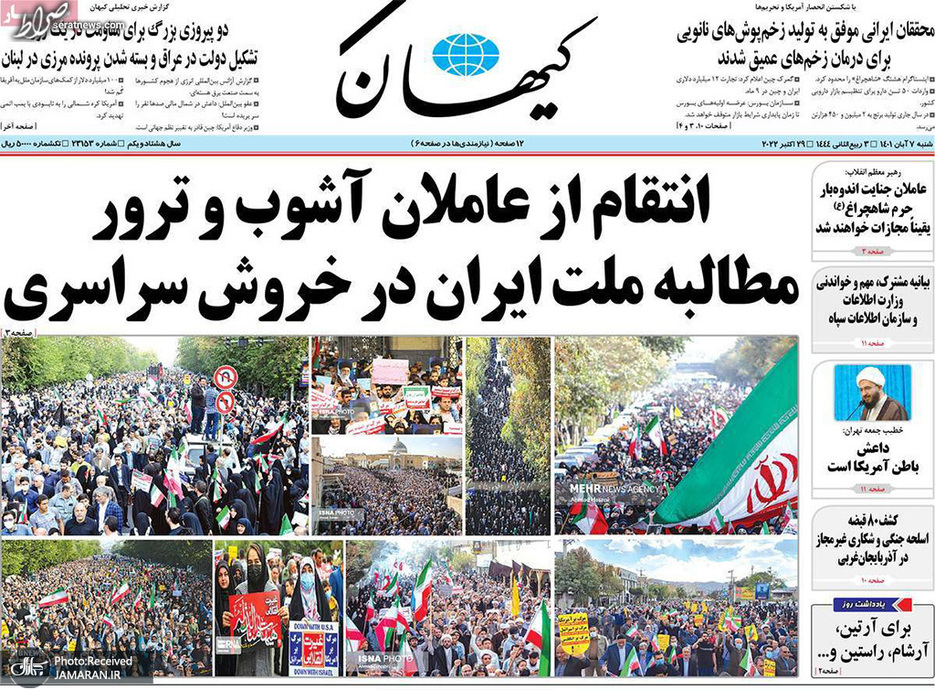 تصاویر/ پیشخوان روزنامههای شنبه ۷ آبان