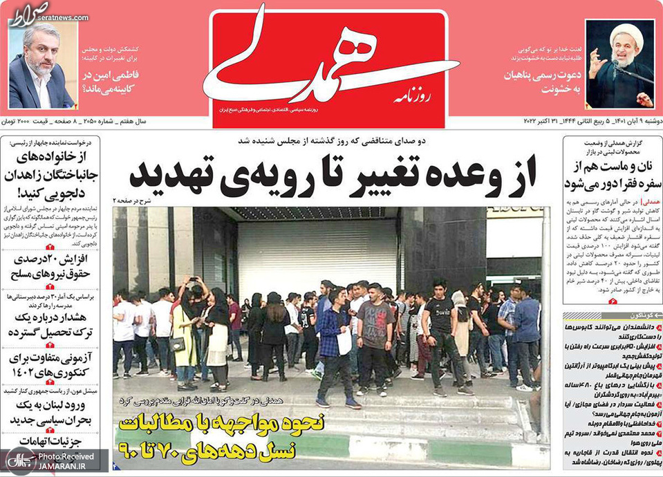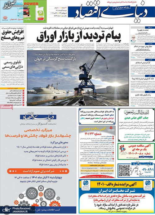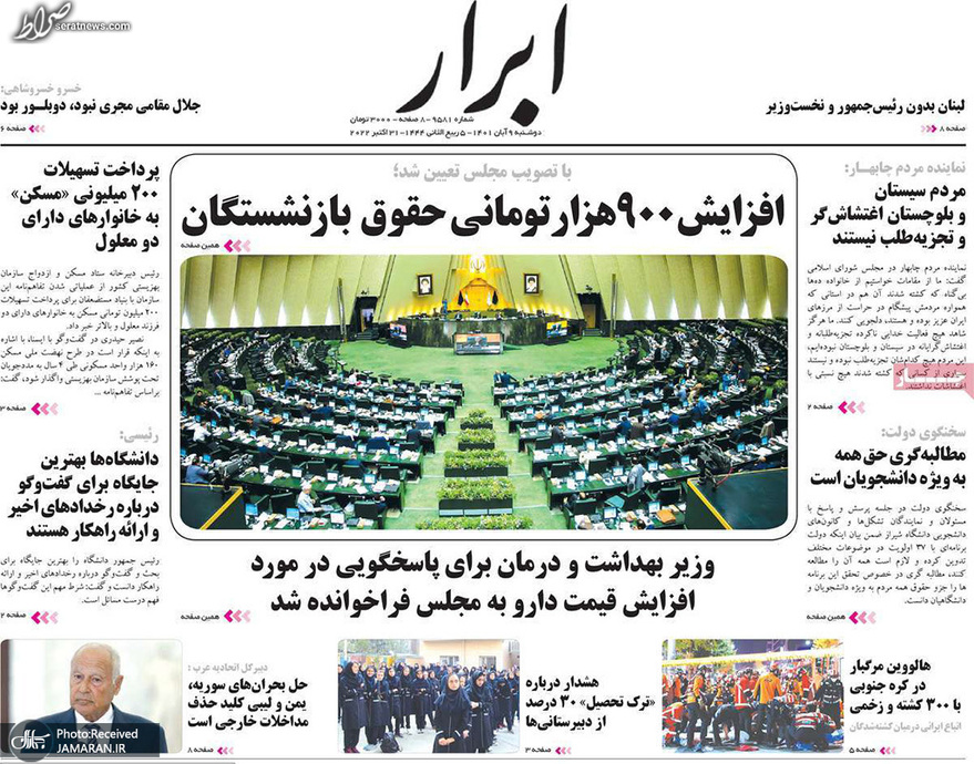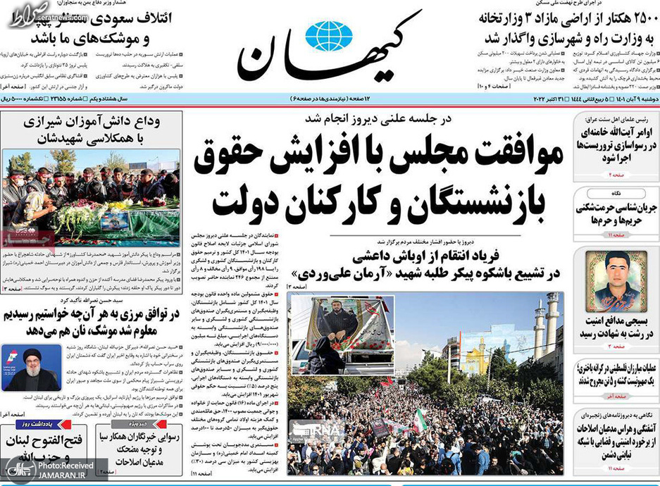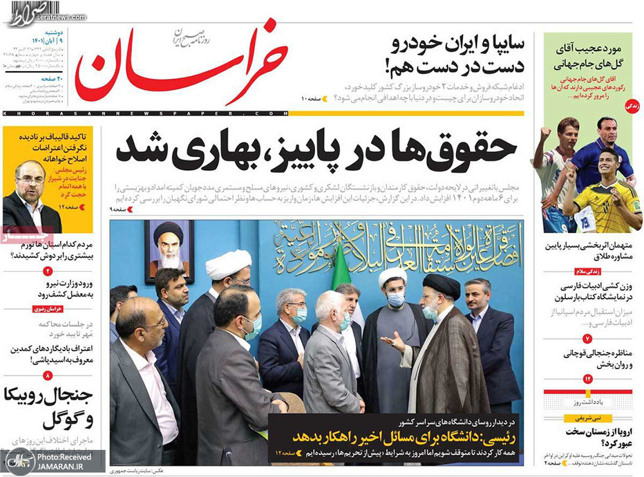 تصاویر/ پیشخوان روزنامههای دوشنبه ۹ آبان