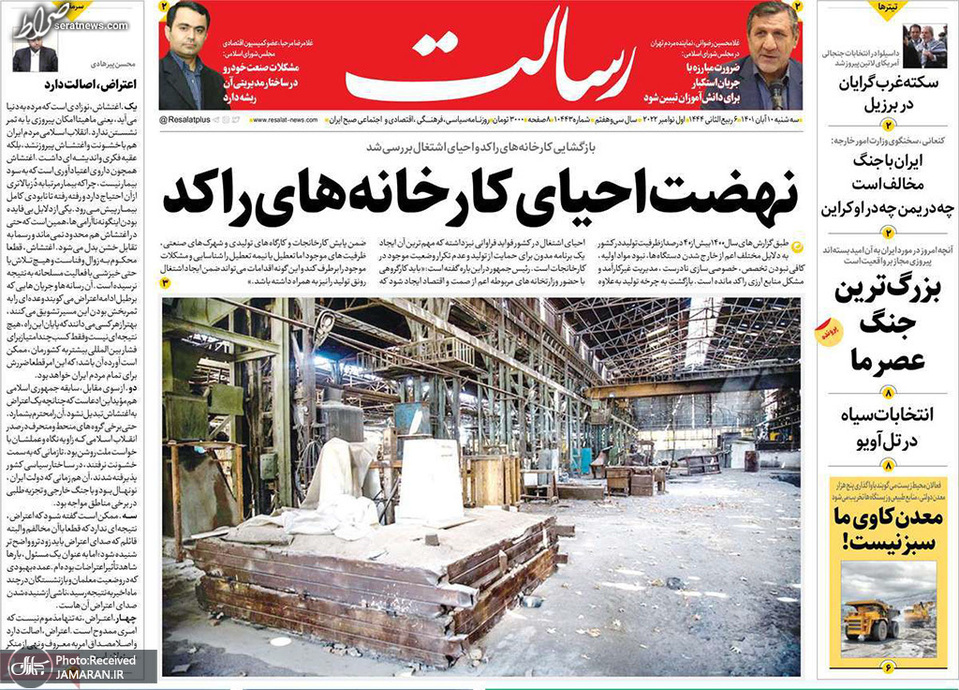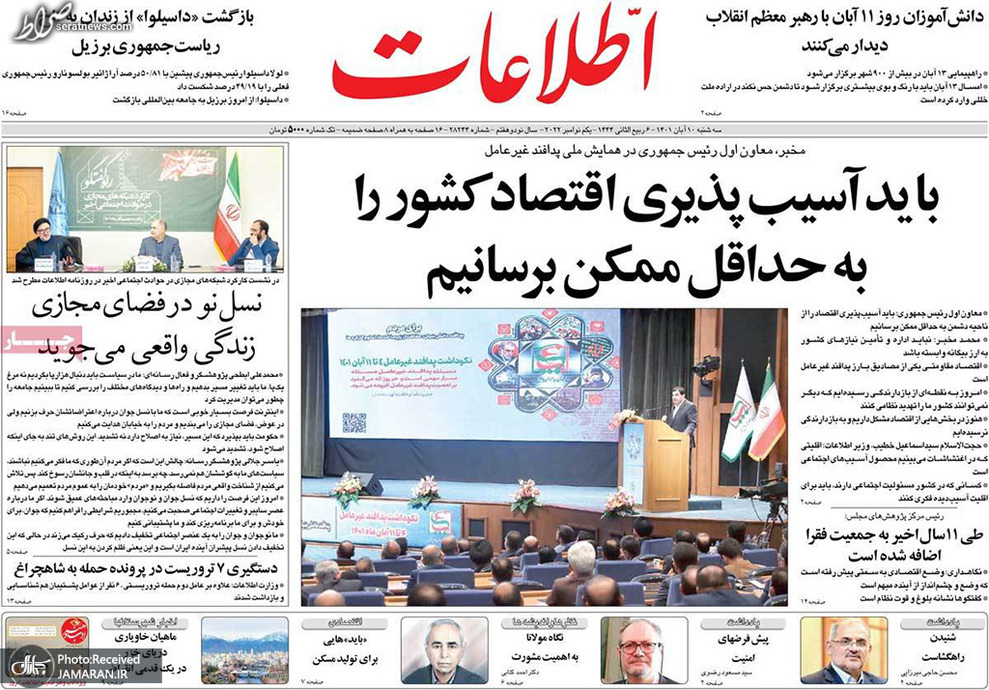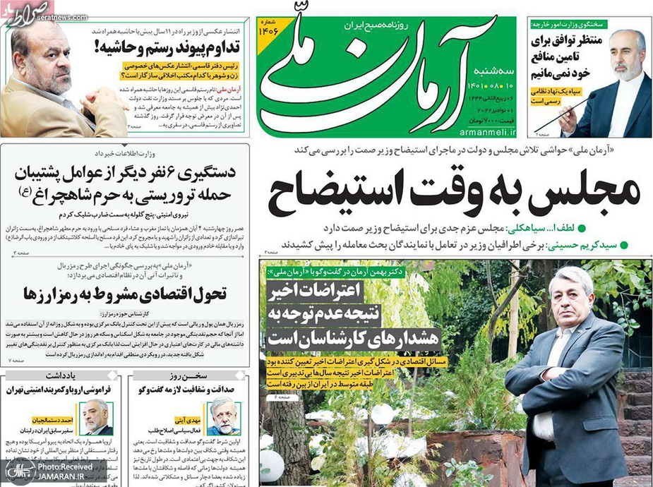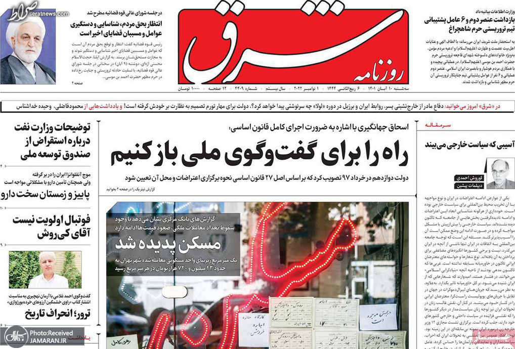 تصاویر/ پیشخوان روزنامههای سهشنبه ۱۰ آبان