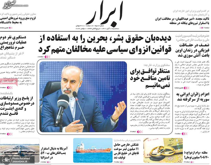 تصاویر/ پیشخوان روزنامههای دوشنبه ۹ آبان