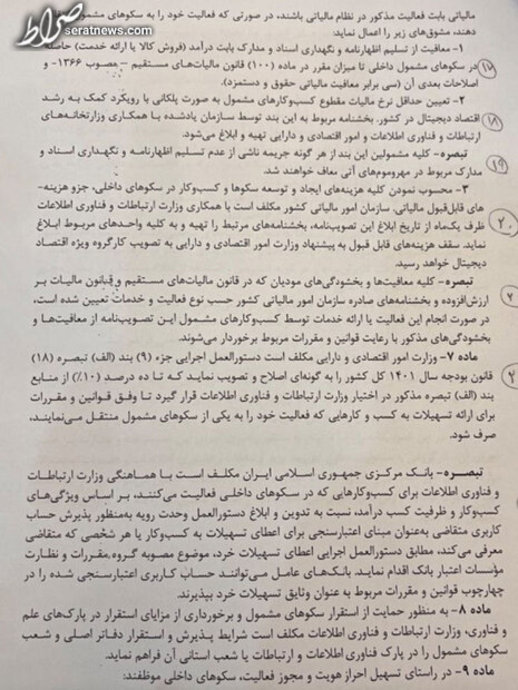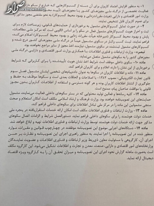 در این آیین نامه که در قالب ۱۴ ماده به تصویب رسیده است، حدود ۳۰نوع امکان و حمایت قانونی جدید برای سکوها و کسب و کارهای اینترنتی پیش بینی شده است که در قالب تکالیفی برای دستگاههای مختلف در قالب این آیین نامه متبلور شده است. در این آیین نامه برای سکوهای کسب و کاری مشمول، تسهیلاتی همچون امکانات متنوع پرداخت، فراهم کردن زیرساختهای سخت افزاری، برخورداری از مزایای استقرار در پارکهای علم و فناوری، تبلیغ در سازمان صدا و سیما و ... پیش بینی شده است.