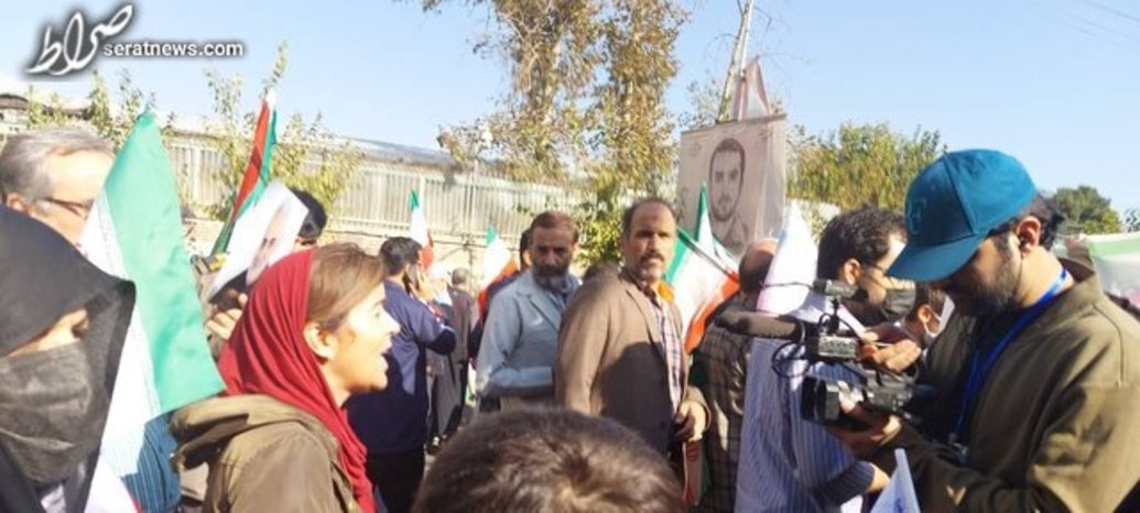 راهپیمایان پرچم ایران را بالا بردهاند و پلاکاردهایی در دست دارند که بر روی آن شعار «مرگ بر آمریکا»، «مرگ بر اسرائیل» و سخنانی از رهبر انقلاب نوشته بود.