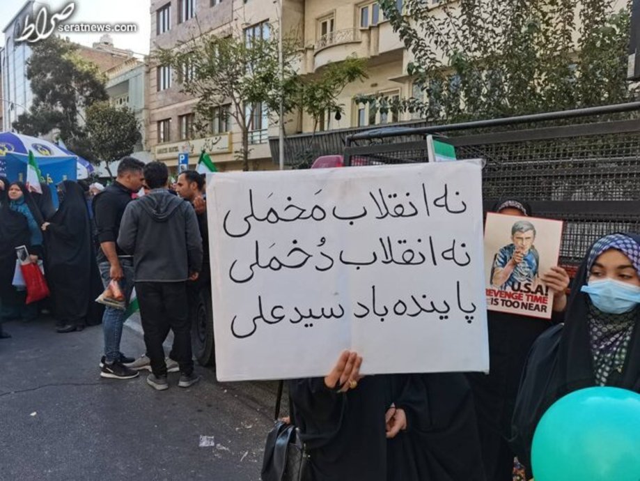بر روی یک پلاکارد نوشته شده «همین شعار مرگ بر آمریکا و مرگ بر اسرائیل برای آنها مرگ میآورد» و بر دیگری نوشته شده «ایران پر از شهیده، فتنه جواب نمیده».