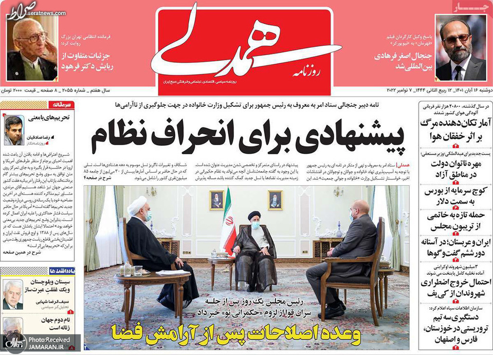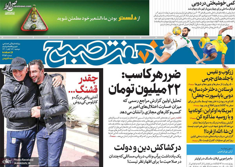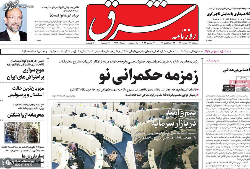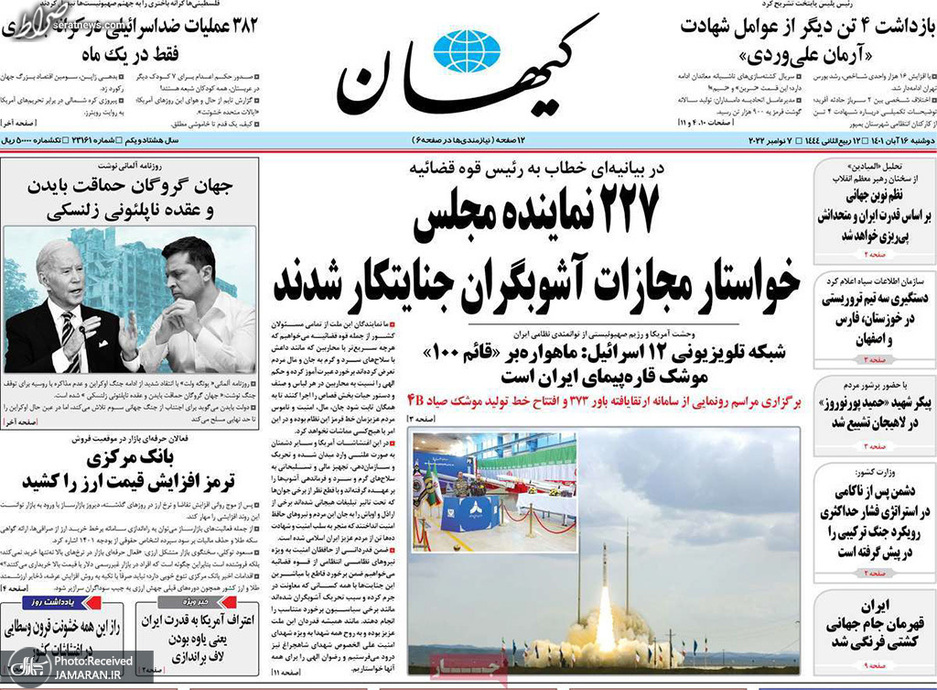 تصاویر/ پیشخوان روزنامههای دوشنبه ۱۶ آبان