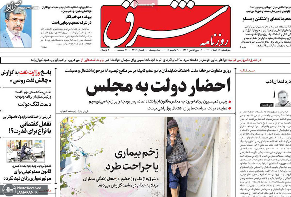 تصاویر/ پیشخوان روزنامههای چهارشنبه ۱۸ آبان