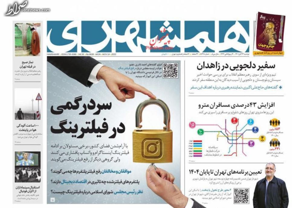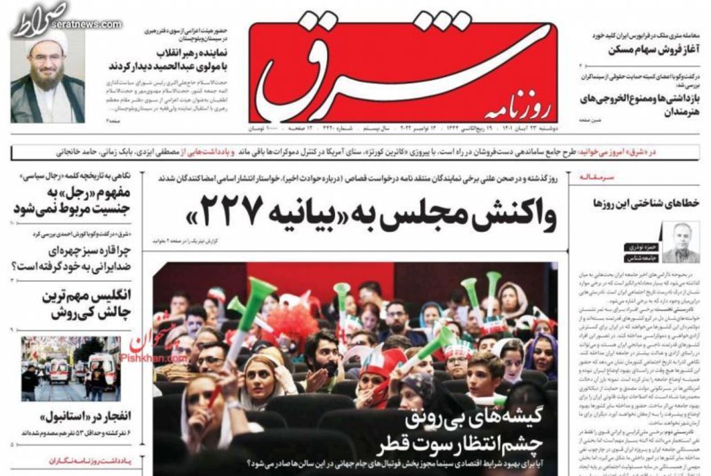 تصاویر/ پیشخوان روزنامههای یکشنبه ۲۲ آبان