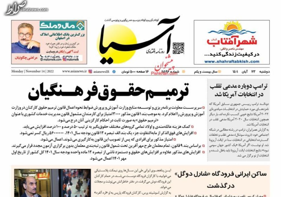 تصاویر/ پیشخوان روزنامههای دوشنبه ۲۳ آبان