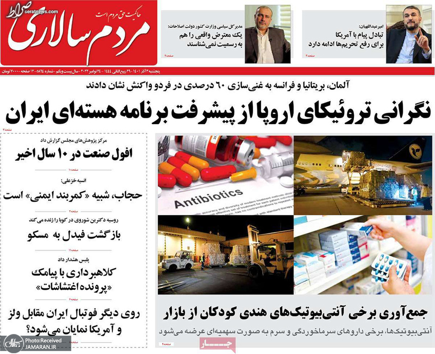 تصاویر/ پیشخوان روزنامههای پنجشنبه ۳ آذر