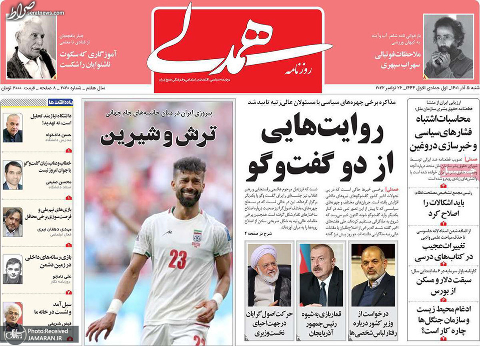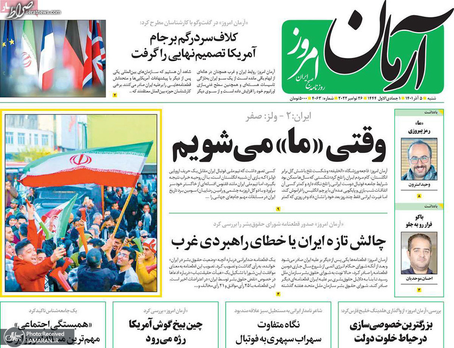 تصاویر/ پیشخوان روزنامههای شنبه ۵ آذر