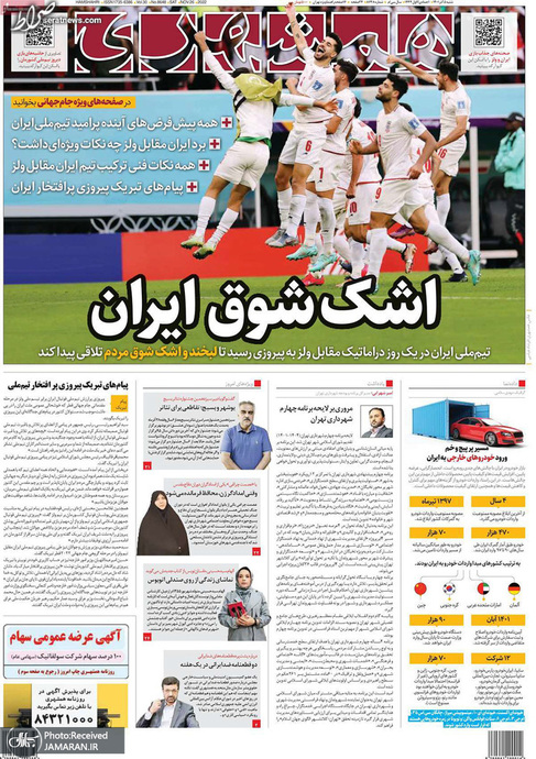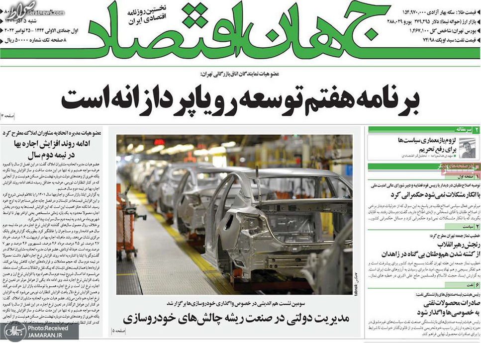 تصاویر/ پیشخوان روزنامههای یکشنبه ۶ آذر