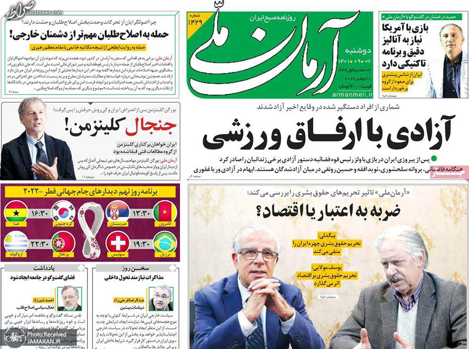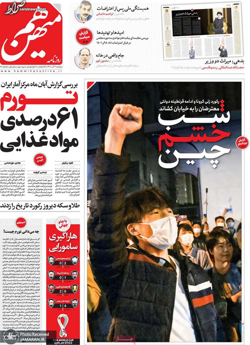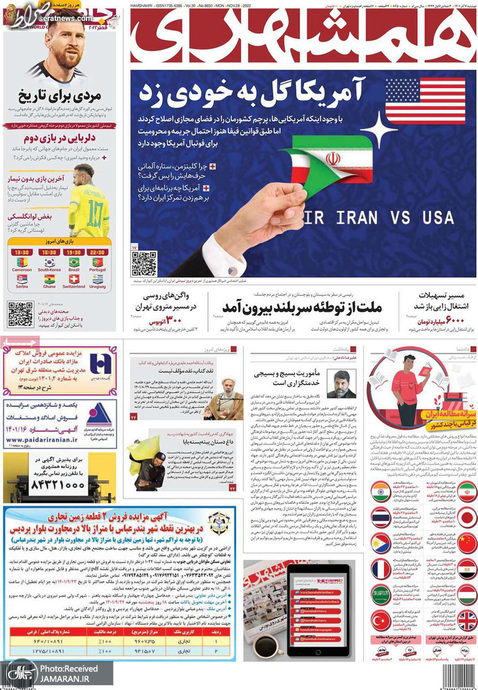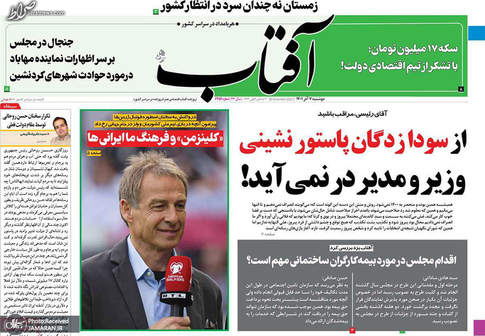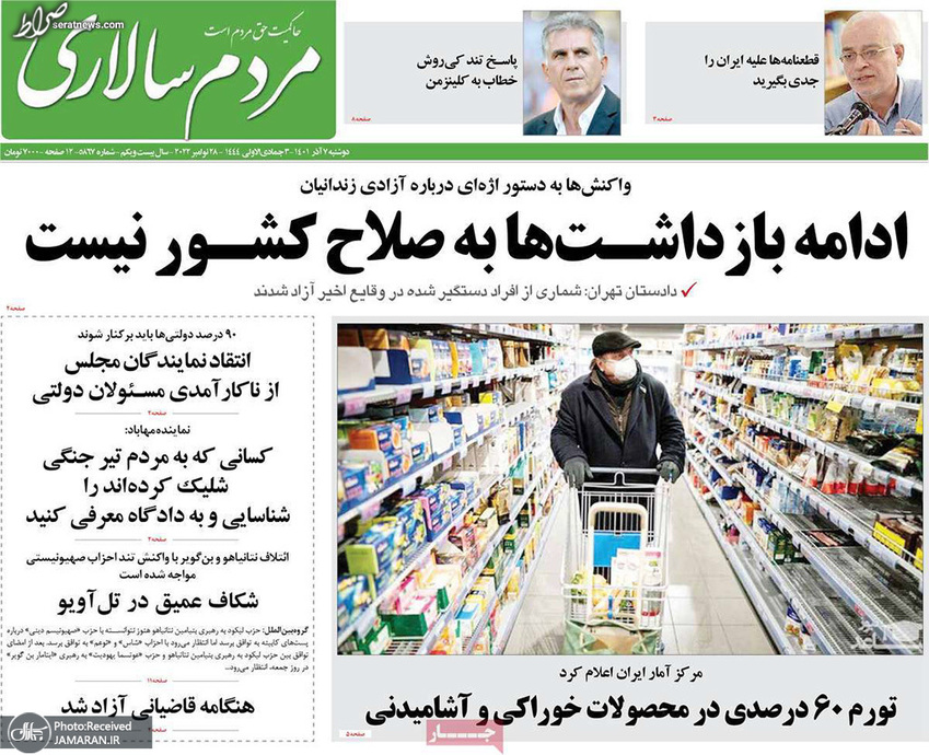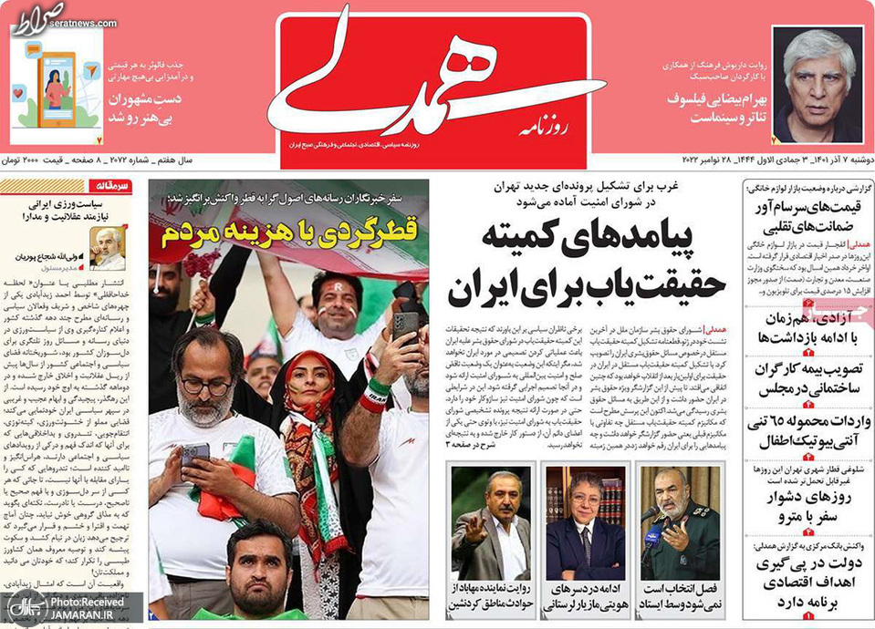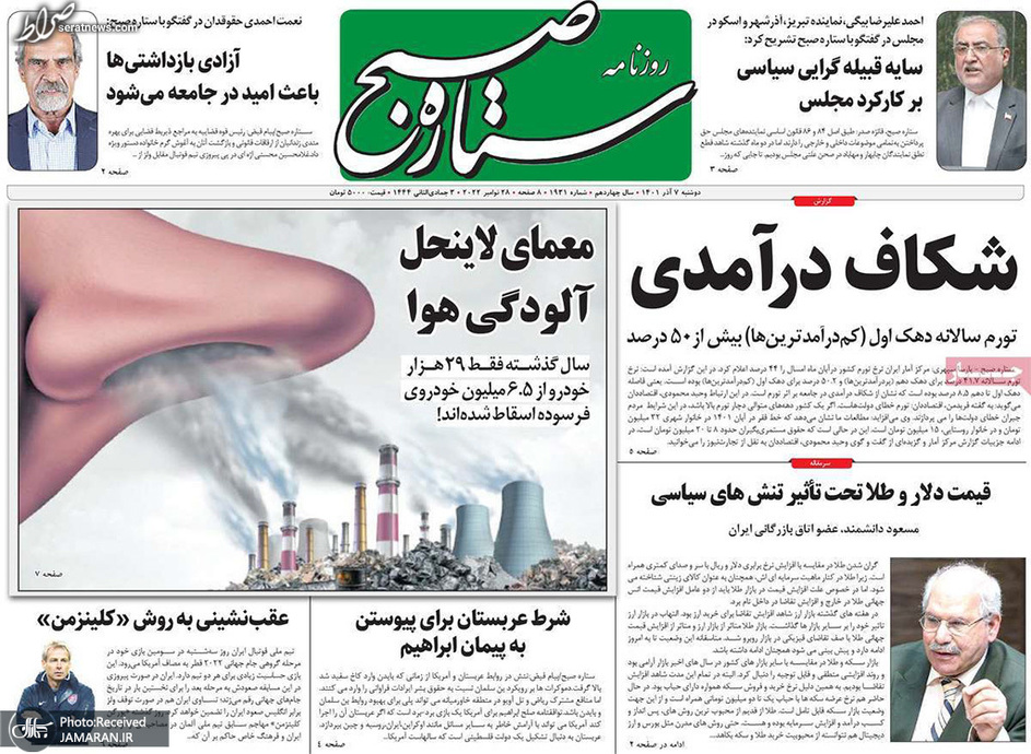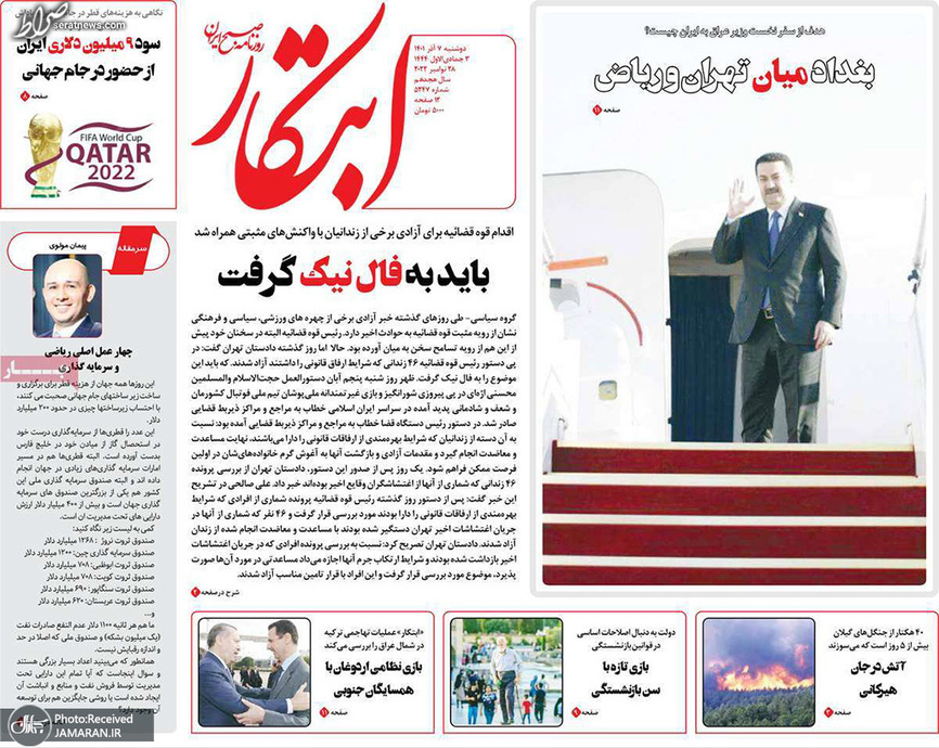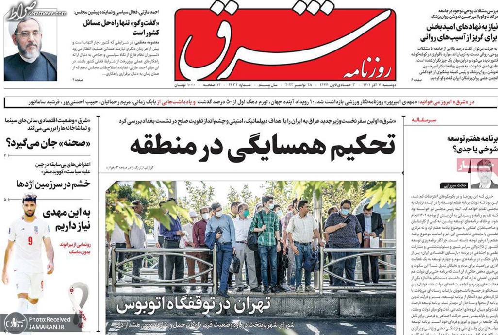 تصاویر/ پیشخوان روزنامه‌های دوشنبه ۷ آذر