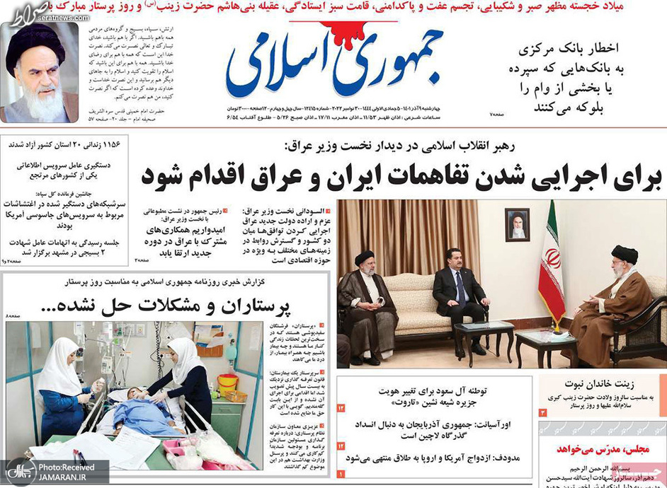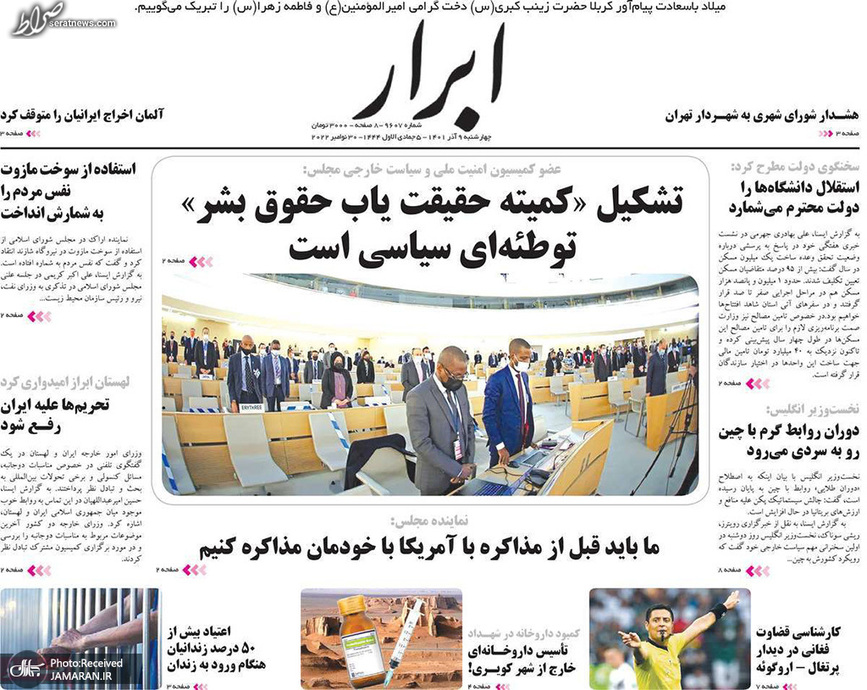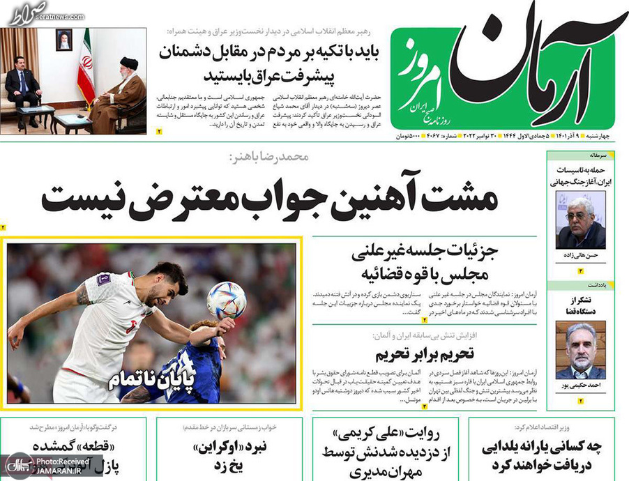 تصاویر/ پیشخوان روزنامههای سهشنبه ۸ آذر